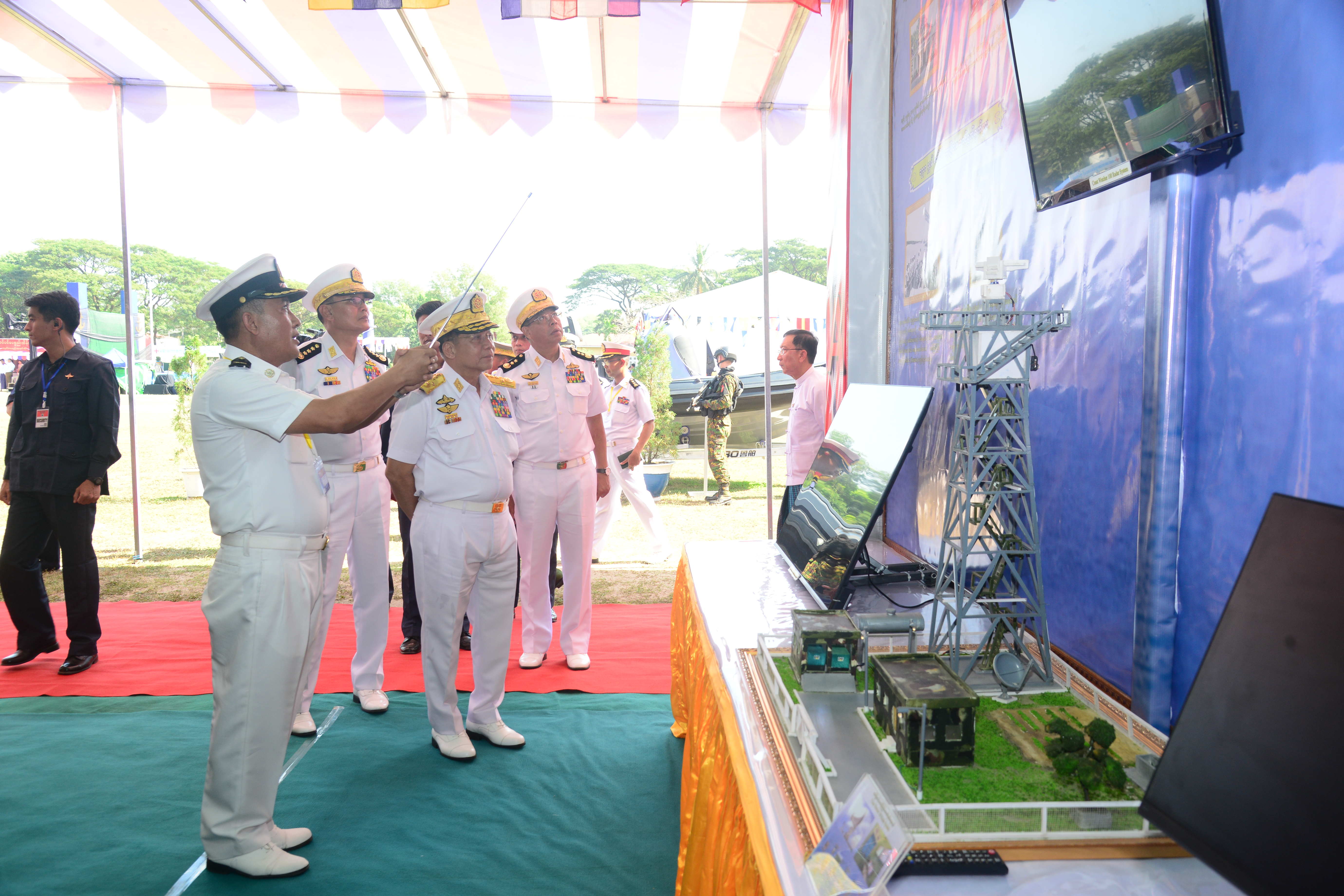 ၎င်းနောက် နိုင်ငံတော်စီမံအုပ်ချုပ်ရေးကောင်စီဥက္ကဋ္ဌ တပ်မတော်ကာကွယ်ရေးဦးစီးချုပ်နှင့် အဖွဲ့ဝင်များသည် တပ်တော်ဝင်စစ်ရေယာဉ်များဖြစ်သော (၆၃) မီတာ ရေငုပ်သင်္ဘော တိုက်ဖျက်ရေးရေယာဉ် (၂) စီးတို့အား လှည့်လည်ကြည့်ရှုကြရာ တာဝန်ရှိသူများက လိုက်လံရှင်းလင်းတင်ပြကြသည်။