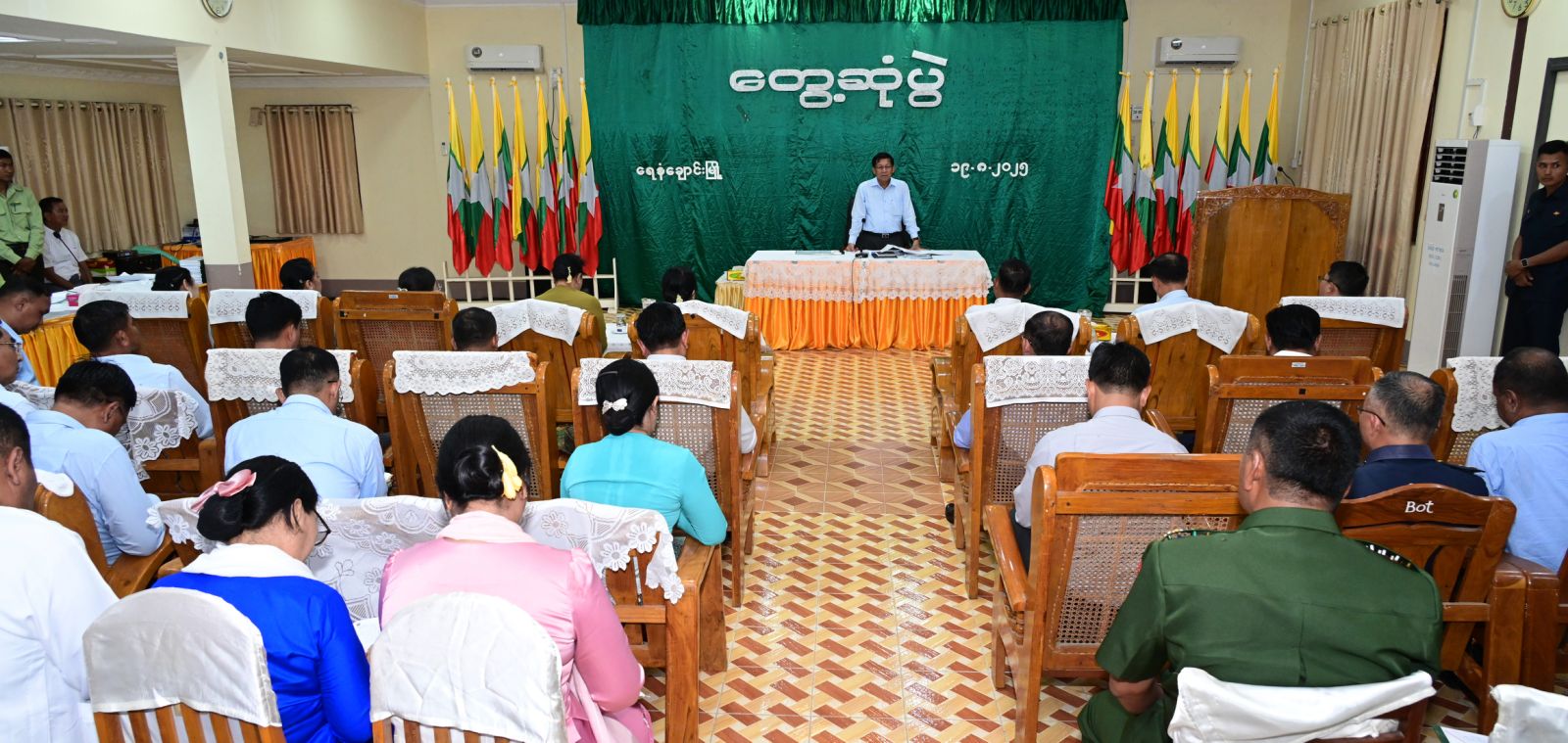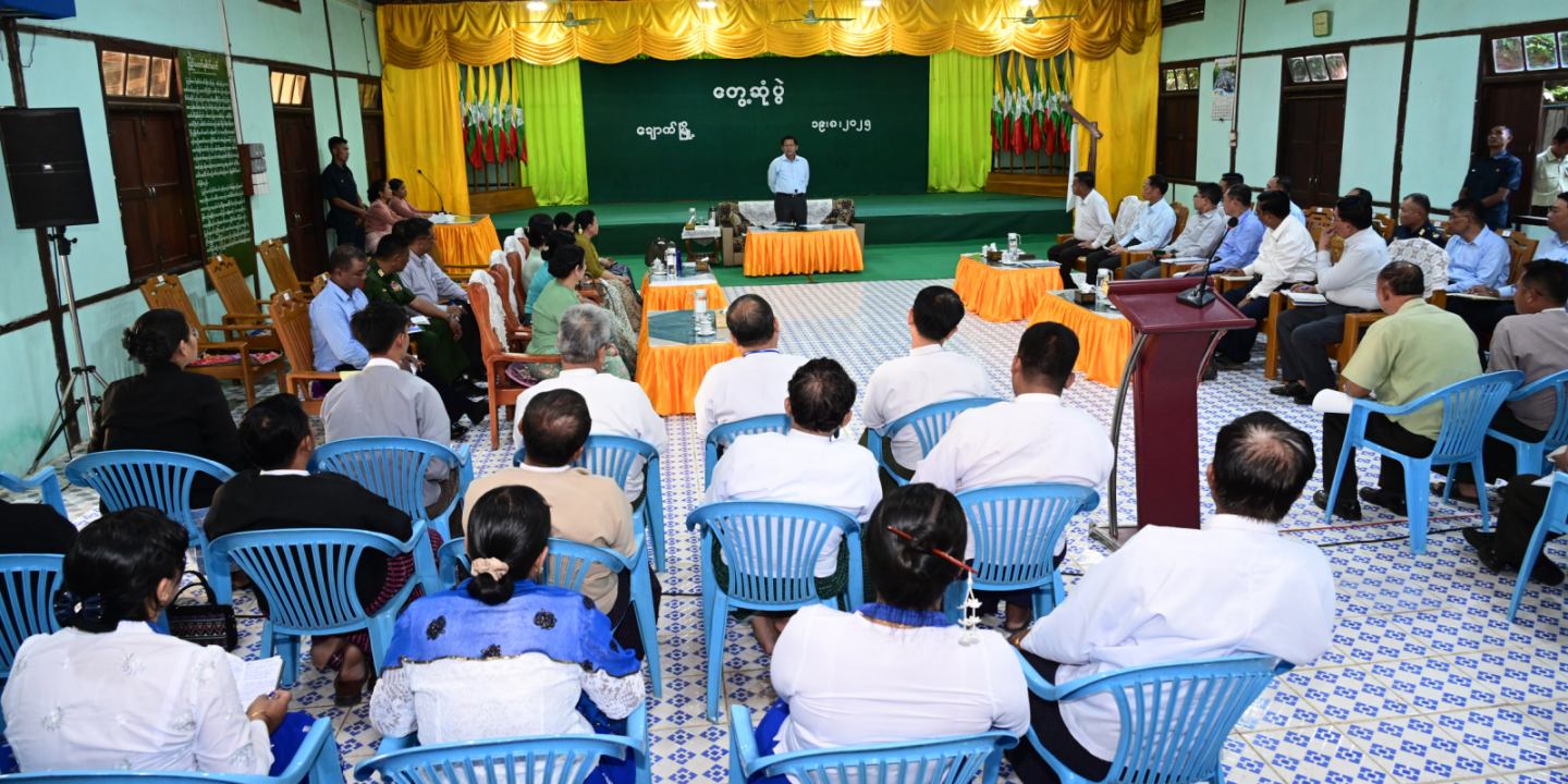 နိုင်ငံတော်လုံခြုံရေးနှင့်အေးချမ်းသာယာရေးကော်မရှင်ဥက္ကဋ္ဌ ဗိုလ်ချုပ်မှူးကြီးမင်းအောင်လှိုင် ချောက်မြို့နှင့်ရေနံချောင်းမြို့တို့ရှိ ဌာနဆိုင်ရာတာဝန်ရှိသူများ၊ မြို့မိမြို့ဖများနှင့် တွေ့ဆုံ၍ ဒေသဖွံ့ဖြိုးတိုးတက်ရေးဆွေးနွေးပြောကြား