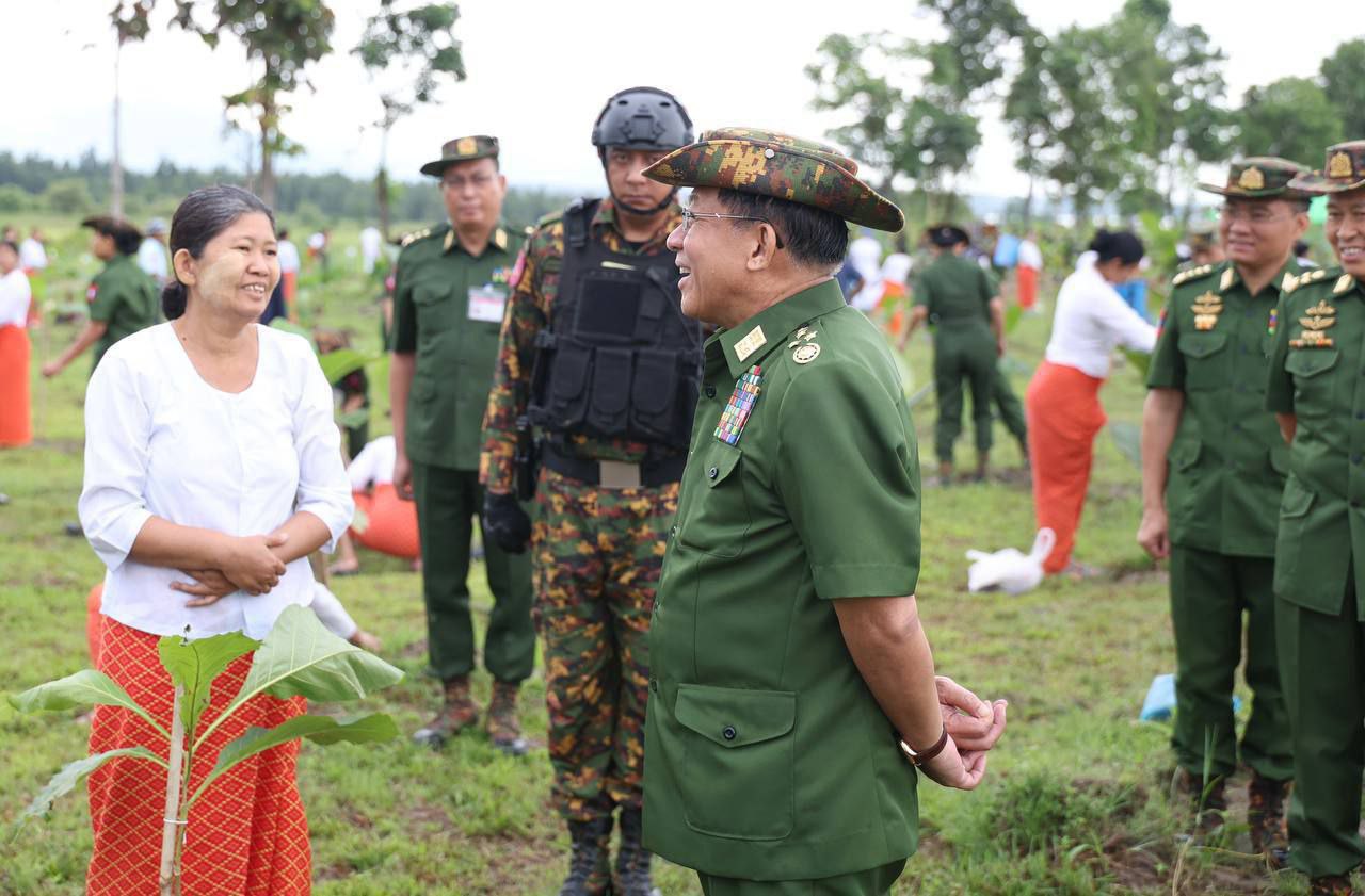 နိုင်ငံတော်လုံခြုံရေးနှင့်အေးချမ်းသာယာရေးကော်မရှင်ဥက္ကဋ္ဌ တပ်မတော်ကာကွယ်ရေးဦးစီးချုပ်နှင့်ဇနီးတို့က ရတနာတန်းဝင်ကျွန်းပင်ကို ဦးဆောင်စိုက်ပျိုး