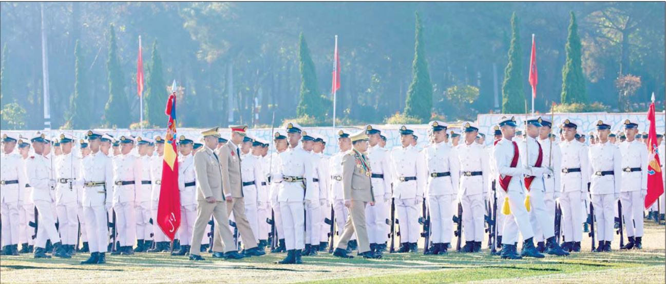 ယင်းနောက် နိုင်ငံတော်လုံခြုံရေးနှင့်အေးချမ်းသာယာရေးကော်မရှင်ဥက္ကဋ္ဌ တပ်မတော်ကာကွယ်ရေးဦးစီးချုပ် ဗိုလ်ချုပ်မှူးကြီး သတိုးမဟာသရေစည်သူ သတိုးသီရိသုဓမ္မ မင်းအောင်လှိုင်သည် ဗိုလ်လောင်းတပ်ခွဲများ၏ အလေးပြုခြင်းကို ခံယူပြီးနောက် စစ်ရေးပြအခမ်းအနားမှ ပြန်လည်ထွက်ခွာသည်။