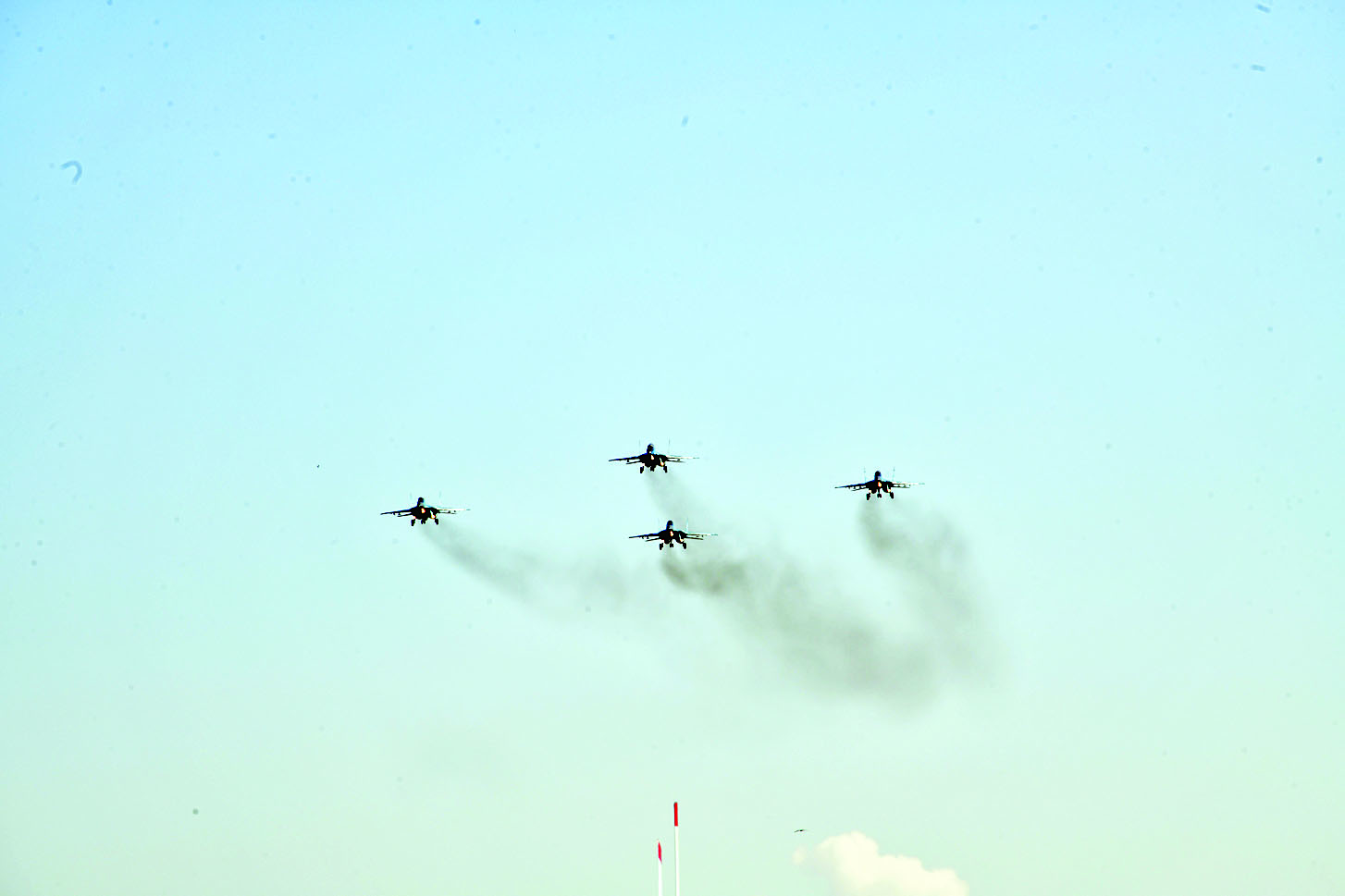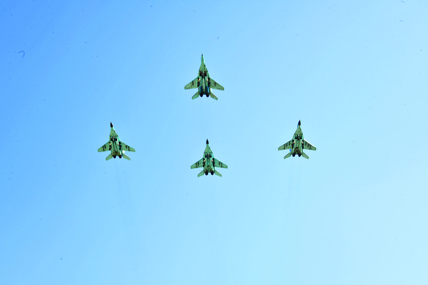 ထိုသို့ စွမ်းရည်ပြသရာတွင် MiG-29 ဘက်စုံသုံးဂျက်တိုက်လေယာဉ် ၁ စီးက ရှုရပ်၏ ရှေ့တည့်တည့်မှ ဝင်ရောက်လာပြီး Victory Roll Maneuver နှင့် Level 8 Maneuver: Combat Turn & Multiple Roll Maneuver ကိုလည်းကောင်း Slow Flight & Zoom Climb Maneuver ၊ Vertical Roll Maneuver တို့ကိုလည်းကောင်း စွမ်းရည်ပြပျံသန်းပြီး MiG-29 ဘက်စုံသုံးဂျက်တိုက်လေယာဉ် ၄ စီးက ရှုရပ်၏ ရှေ့တည့်တည့်မှ Box Formation ပုံစံဖြင့် အုပ်ဖွဲ့ပျံသန်းအလေးပြုကြသည်။