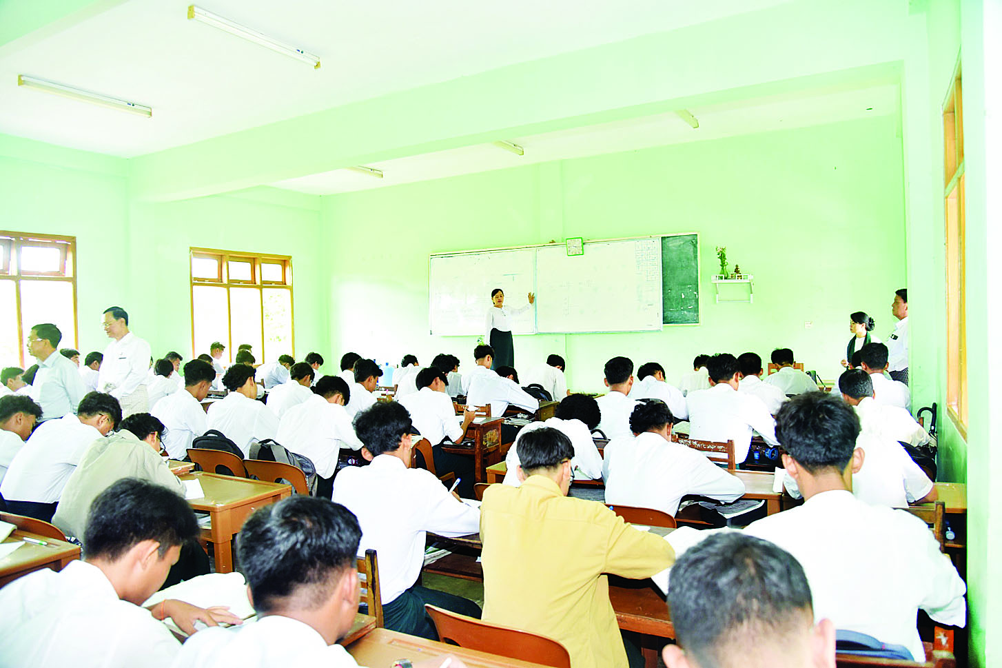 ထိုသို့တွေ့ဆုံရာတွင် ကောင်စီအဖွဲ့ဝင် ဗိုလ်ချုပ်ကြီး မောင်မောင်အေးနှင့် တာဝန်ရှိသူများသည် ကျောင်းသားကျောင်းသူများ၏ သင်ခန်းစာများ ပြန်လည်လေ့ကျင့်ကျက်မှတ်နေမှုများကို ကြည့်ရှုအားပေးသည်။