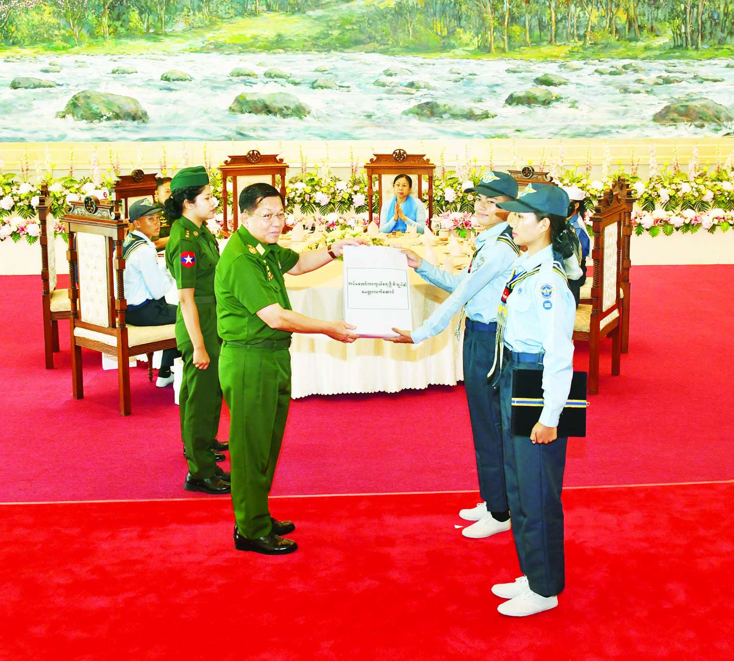 နိုင်ငံတော်စီမံအုပ်ချုပ်ရေးကောင်စီဥက္ကဋ္ဌ တပ်မတော်ကာကွယ်ရေးဦးစီးချုပ် ဗိုလ်ချုပ်မှူးကြီး မင်းအောင်လှိုင် အခြေခံနှင့်တန်းမြင့် ရေကြောင်းလူငယ် သင်တန်းအမှတ်စဉ် (၁/၂၀၂၅) နှင့် အခြေခံနှင့် တန်းမြင့်လေကြောင်းလူငယ်သင်တန်း (၁/၂၀၂၅) မှ သင်တန်းသား သင်တန်းသူများနှင့် အုပ်ချုပ်သူနည်းပြများအား တွေ့ဆုံအမှာစကားပြောကြား