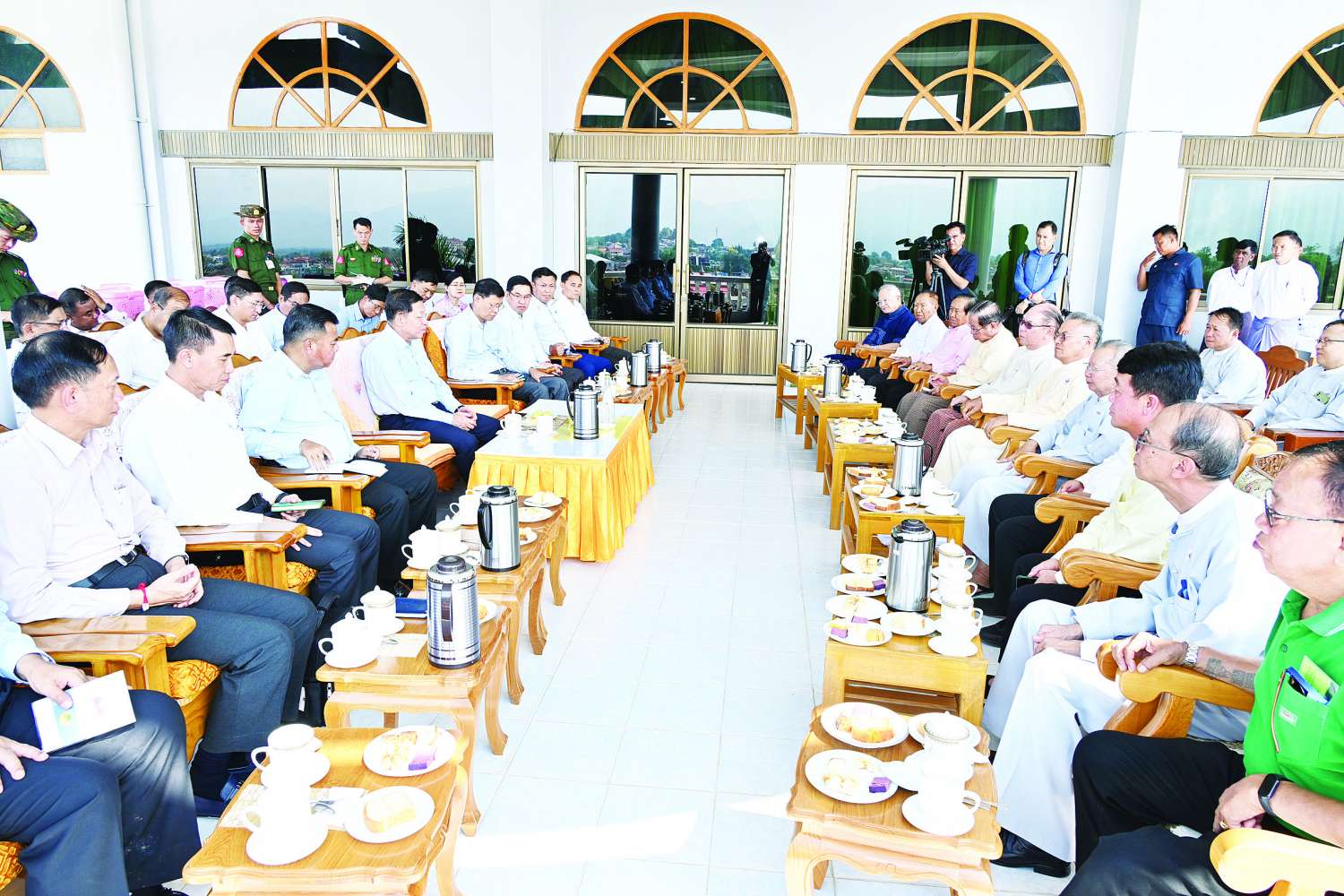အဆိုပါတွေ့ဆုံပွဲသို့ နိုင်ငံတော်စီမံအုပ်ချုပ်ရေးကောင်စီဥက္ကဋ္ဌ နိုင်ငံတော်ဝန်ကြီးချုပ်နှင့်အတူ ကောင်စီတွဲဖက်အတွင်းရေးမှူး ဒုတိယဗိုလ်ချုပ်ကြီး ရဲဝင်းဦး၊ ကောင်စီဝင်များဖြစ်ကြသည့် ဗိုလ်ချုပ်ကြီး မြထွန်းဦး၊ ဒုတိယဗိုလ်ချုပ်ကြီး ညိုစော၊ ပြည်ထောင်စုဝန်ကြီးများ၊ ရှမ်းပြည်နယ်ဝန်ကြီးချုပ်၊ ကာကွယ်ရေးဦးစီးချုပ်ရုံးမှ အဆင့်မြင့်တပ်မတော်အရာရှိကြီးများ၊ တြိဂံဒေသတိုင်းစစ်ဌာနချုပ် တိုင်းမှူး၊ ရှမ်းပြည်နယ် (အရှေ့ပိုင်း) ပြည်နယ်၊ ခရိုင်၊ မြို့နယ်အဆင့်ဌာနဆိုင်ရာ တာဝန်ရှိသူများ၊ မြို့မိမြို့ဖများ၊ ဒေသခံတိုင်းရင်းသားပြည်သူများနှင့် တာဝန်ရှိသူများ တက်ရောက်ကြသည်။