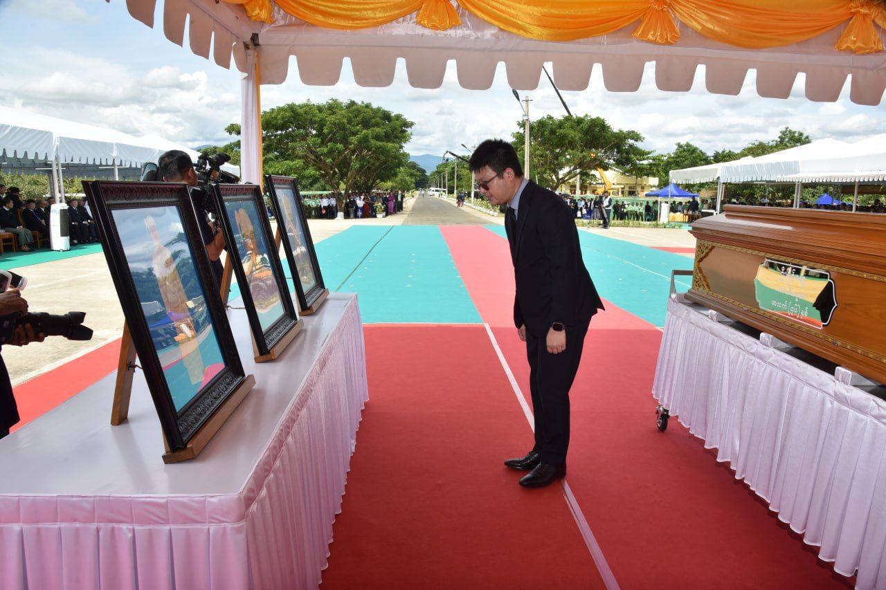 ပြည်ထောင်စုသမ္မတမြန်မာနိုင်ငံတော်၊ ယာယီသမ္မတဦးမြင့်ဆွေ၏ နိုင်ငံတော်ဈာပန အခမ်းအနားအား ယနေ့ နေ့လယ်ပိုင်းတွင် နေပြည်တော်၊ တပ်မတော်ဆေးရုံကြီးရှိ ငြိမ်းအေးဇရပ်နှင့် တပ်မတော်စစ်သင်္ချိုင်း(နေပြည်တော်) တို့၌ ကျင်းပပြုလုပ်ရာ နိုင်ငံတော်လုံခြုံရေးနှင့် အေးချမ်းသာယာရေးကော်မရှင်ဥက္ကဋ္ဌ တပ်မတော် ကာကွယ်ရေးဦးစီးချုပ် ဗိုလ်ချုပ်မှူးကြီး မင်းအောင်လှိုင် နှင့် ဇနီး ဒေါ်ကြူကြူလှ တို့ တက်ရောက်သည်။