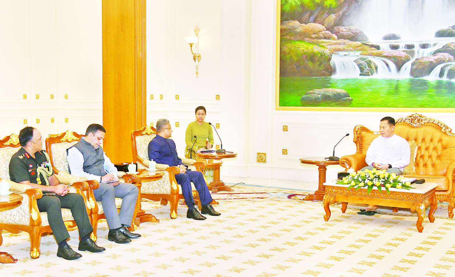 တွေ့ဆုံစဉ် မြန်မာ-အိန္ဒိယ နှစ်နိုင်ငံနယ်စပ်ဒေသ တည်ငြိမ်အေးချမ်းရေးနှင့် ပူးပေါင်းဆောင်ရွက်မှု တိုးမြှင့်ရေးဆိုင်ရာကိစ္စရပ်များ၊ နှစ်နိုင်ငံကုန်သွယ်မှု၊ ရင်းနှီးမြှုပ်နှံမှုကဏ္ဍတိုးမြှင့်ရေး၊ နှစ်နိုင်ငံပူးပေါင်းဆောင်ရွက်လျက်ရှိသည့် ဖွံ့ဖြိုးတိုးတက်ရေးဆိုင်ရာကိစ္စရပ်များ၊ နှစ်နိုင်ငံ တပ်မတော်နှစ်ရပ်အကြား ချစ်ကြည်ရင်းနှီးစွာဖြင့် ပူးပေါင်းဆောင်ရွက်မှုတိုးမြှင့်ရေးဆိုင်ရာကိစ္စရပ်များ၊ စက်မှုကဏ္ဍဖွံ့ဖြိုးတိုးတက်ရေးအတွက် ကျွမ်းကျင်လုပ်သားနှင့် လူသားအရင်းအမြစ်များ စနစ်တကျ မွေးထုတ်ပေးနိုင်ရေး ပူးပေါင်းဆောင်ရွက်လျက်ရှိသည့်ကိစ္စရပ်များကို ရင်းနှီးပွင့်လင်းစွာ ဆွေးနွေးကြပြီး အမှတ်တရလက်ဆောင်ပစ္စည်းများ အပြန်အလှန်လဲလှယ်ကြသည်။