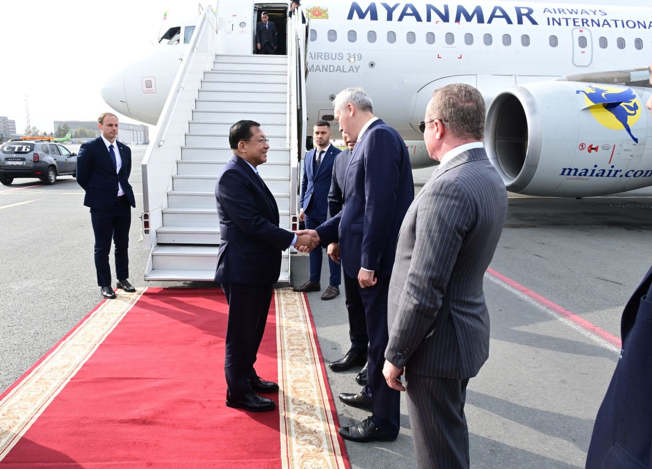 ပြည်ထောင်စုသမ္မတမြန်မာနိုင်ငံတော်ယာယီသမ္မတ နိုင်ငံတော်လုံခြုံရေးနှင့်အေးချမ်းသာယာရေးကော်မရှင်ဥက္ကဋ္ဌ ဗိုလ်ချုပ်မှူးကြီး မင်းအောင်လှိုင် ဦးဆောင်သည့် မြန်မာအဆင့်မြင့်ကိုယ်စားလှယ်အဖွဲ့ ကမ္ဘာ့အဏုမြူသီတင်းပတ်ဖိုရမ်-၂၀၂၅ (World Atomic Week Forum 2025) သို့ တက်ရောက်ရန် ရုရှားဖက်ဒရေးရှင်းနိုင်ငံသို့ ရောက်ရှိ