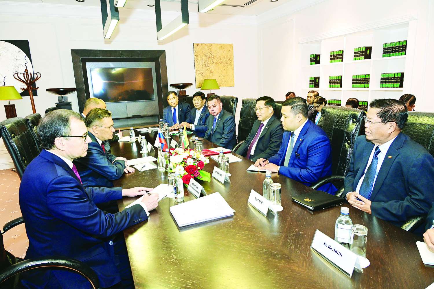 ပြည်ထောင်စုသမ္မတမြန်မာနိုင်ငံတော်ယာယီသမ္မတ နိုင်ငံတော်လုံခြုံရေးနှင့်အေးချမ်းသာယာရေးကော်မရှင်ဥက္ကဋ္ဌ ဗိုလ်ချုပ်မှူးကြီး မင်းအောင်လှိုင် ရုရှားဖက်ဒရေးရှင်းနိုင်ငံ နိုင်ငံပိုင်အဏုမြူစွမ်းအင်ကော်ပိုရေးရှင်း (ROSATOM) ညွှန်ကြားရေးမှူးချုပ် Mr. Alexey Likhachev နှင့် တွေ့ဆုံဆွေးနွေး