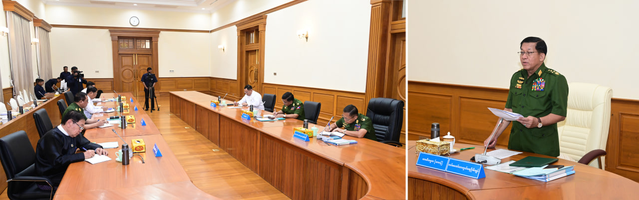 ယင်းနောက် ယာယီသမ္မတ (တာဝန်) တပ်မတော်ကာကွယ်ရေးဦးစီးချုပ်၏ တင်ပြချက်များနှင့်စပ်လျဉ်း၍ အမျိုးသားကာကွယ်ရေးနှင့် လုံခြုံရေးကောင်စီအဖွဲ့ဝင်များက ဆွေးနွေးတင်ပြကြရာ ဦးစွာ ပြည်သူ့လွှတ်တော်ဥက္ကဋ္ဌ ဦးတီခွန်မြတ်က ၂၀၂၁ ခုနှစ်၊ ဖေဖော်ဝါရီလ ၁ ရက်နေ့ ရက်စွဲပါဥပဒေကဲ့သို့ အာဏာတည်သောအမိန့် အမိန့်အမှတ် (၁/၂၀၂၁) ဖြင့် ယာယီသမ္မတက တပ်မတော်ကာကွယ်ရေးဦးစီးချုပ်အား နိုင်ငံတော်၏ ဥပဒေပြုရေး၊ အုပ်ချုပ်ရေးနှင့် တရားစီရင်ရေးအာဏာကို အပ်နှင်းခဲ့ကြောင်း၊ ထိုသို့ နိုင်ငံတော်အာဏာကို လွှဲအပ်စေသည့် တာဝန်များအား ပြီးမြောက်အောင် ဆောင်ရွက်ခဲ့ပြီးဖြစ်ကြောင်း ယာယီသမ္မတ (တာဝန်) တပ်မတော်ကာကွယ်ရေးဦးစီးချုပ်က ယနေ့တွင် အစီရင်ခံတင်ပြခဲ့သည့်အတွက် အမျိုးသားကာကွယ်ရေးနှင့်လုံခြုံရေးကောင်စီက ဥပဒေကဲ့သို့ အာဏာတည်သောအမိန့် အမိန့်အမှတ် (၁/၂၀၂၁) ကို ဖွဲ့စည်းပုံအခြေခံဥပဒေပုဒ်မ ၄၂၆ အရပယ်ဖျက်ခြင်းအား သဘောတူထောက်ခံပါကြောင်း၊ ဖွဲ့စည်းပုံအခြေခံဥပဒေပုဒ်မ ၄၂၉ တွင် အမျိုးသားကာကွယ်ရေးနှင့် လုံခြုံရေးကောင်စီသည် ပုဒ်မ ၄၂၆ အရ အမိန့်ကိုပယ်ဖျက်ကြောင်း ကြေညာပြီးသည့်နေ့မှစ၍ ခြောက်လအတွင်း ဖွဲ့စည်းပုံအခြေခံဥပဒေပါပြဋ္ဌာန်းချက်များနှင့်အညီ အထွေထွေရွေးကောက်ပွဲ ကျင်းပပေးရမည်ဟုပြဋ္ဌာန်းထားရှိကြောင်း၊ အထွေထွေရွေးကောက်ပွဲများကျင်းပပြီးပါက လွှတ်တော်အစည်းအဝေးကျင်းပခြင်းနှင့် ပတ်သက်၍ ဖွဲ့စည်းပုံအခြေခံဥပဒေပုဒ်မ ၁၂၃ တွင် ပြည်သူ့လွှတ်တော်၏ သက်တမ်းတစ်ရပ်စတင်သော ပထမအကြိမ်ပုံမှန်အစည်းအဝေးကို အထွေထွေရွေးကောက်ပွဲကျင်းပသည့် နေ့ရက်မှ ရက်ပေါင်း ၉၀ အတွင်း ကျင်းပရမည်ဟု ပြဋ္ဌာန်းထားရှိကြောင်း၊ အလားတူ ဖွဲ့စည်းပုံအခြေခံဥပဒေပုဒ်မ ၁၅၄ (ခ) တွင် အမျိုးသားလွှတ်တော်ပထမအကြိမ် ပုံမှန်အစည်းအဝေးကို ပြည်သူ့လွှတ်တော်ပထမအကြိမ် ပုံမှန်အစည်းအဝေးကျင်းပသည့်နေ့မှ ၇ ရက်အတွင်းတွင်လည်းကောင်း၊ ဖွဲ့စည်းပုံအခြေခံဥပဒေပုဒ်မ ၇၈ နှင့် ပုဒ်မ ၁၇၁ (ခ) တွင် ပြည်ထောင်စုလွှတ်တော်နှင့် တိုင်းဒေသကြီး (သို့မဟုတ်) ပြည်နယ်လွှတ်တော်များ၏ ပထမအကြိမ်ပုံမှန်အစည်းအဝေးများကို ပြည်သူ့လွှတ်တော်ပထမအကြိမ်ပုံမှန် အစည်းအဝေးစတင်ကျင်းပသည့်နေ့မှ ၁၅ ရက်အတွင်းတွင်လည်းကောင်း ကျင်းပရမည်ဟု အသီးသီးပြဋ္ဌာန်းထားရှိကြောင်း၊ တင်ပြပါလွှတ်တော်အသီးသီး၏ တတိယအကြိမ် ပထမပုံမှန်အစည်းအဝေးများကို ဖွဲ့စည်းပုံအခြေခံဥပဒေပြဋ္ဌာန်းချက်များနှင့်အညီ အောင်မြင်စွာကျင်းပနိုင်ရေးအတွက် အမျိုးသားကာကွယ်ရေးနှင့် လုံခြုံရေးကောင်စီ၏ ကြီးကြပ်လမ်းညွှန်မှုများကိုခံယူပြီး အောင်မြင်အောင်ဆောင်ရွက်သွားမည်ဖြစ်ကြောင်းကို လေးစားစွာတင်ပြအပ်ပါကြောင်းဖြင့် ဆ
