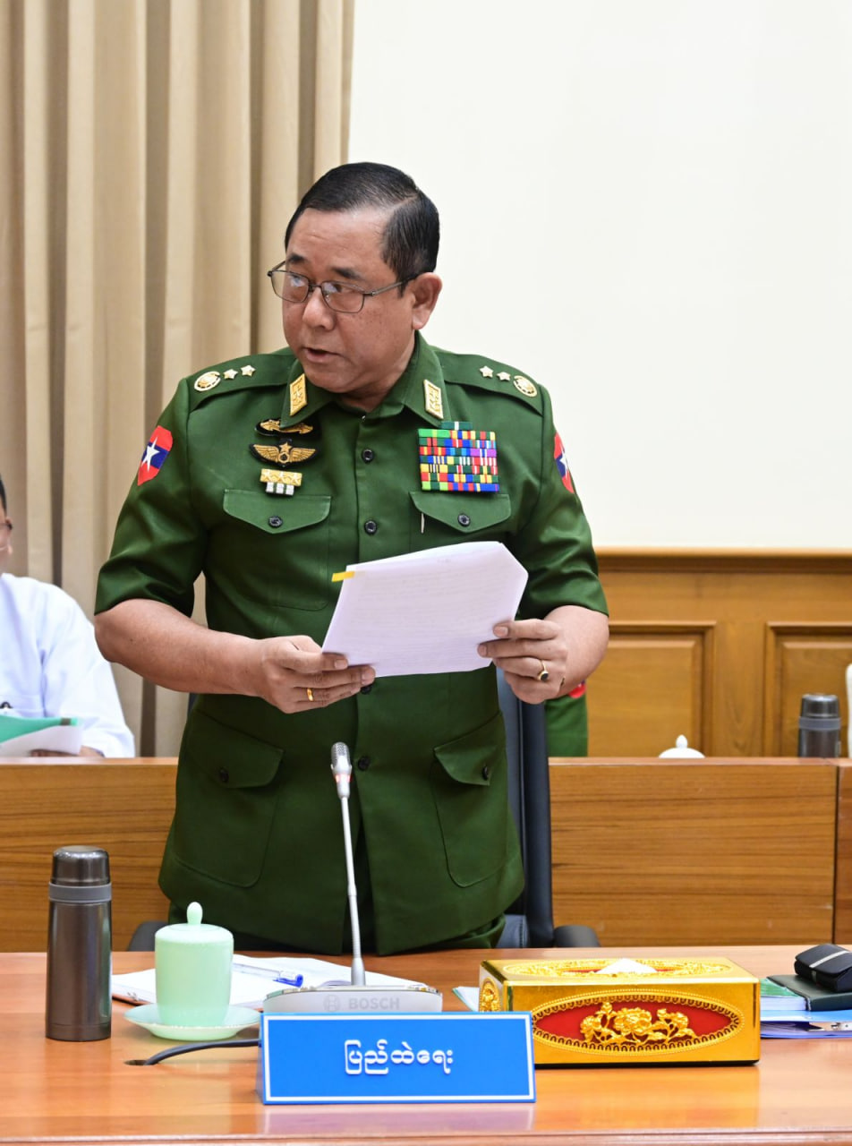 မိမိတို့အစိုးရအဖွဲ့ နိုင်ငံ့တာဝန်ရယူခဲ့ရချိန်မှစပြီး ပြည်ထောင်စုတစ်ဝန်း တည်ငြိမ်အေးချမ်းရေးနှင့် တရားဥပဒေစိုးမိုးမှု အပြည့်အဝရရှိအောင် အလေးထားကြိုးစားဆောင်ရွက်ခဲ့ကြောင်း၊ နိုင်ငံသားတိုင်းသည် ပြည်ထောင်စုမပြိုကွဲရေး၊ တိုင်းရင်းသားစည်းလုံးညီညွတ်မှုမပြိုကွဲရေးနှင့် အချုပ်အခြာအာဏာတည်တံ့ခိုင်မြဲရေးဆိုသည့် ဒို့တာဝန်အရေးသုံးပါးကို စောင့်ထိန်းရန် တာဝန်ရှိကြောင်း၊ အဆိုပါတာဝန်များကို ထမ်းဆောင်နိုင်ရန်အတွက် နိုင်ငံသားတိုင်းစစ်ပညာသင်ကြားရန်နှင့် နိုင်ငံတော်ကာကွယ်ရေးအတွက် စစ်မှုထမ်းဆောင်နိုင်ရန် ၂၀၁၀ ပြည့်နှစ်က အတည်ပြုပြဋ္ဌာန်းခဲ့သည့် ပြည်သူ့စစ်မှုထမ်းဥပဒေကို ၂၀၂၄ ခုနှစ်၊ ဖေဖော်ဝါရီလ ၁၀ ရက်နေ့တွင် အသက်သွင်းခဲ့ပြီး ကျင့်သုံးဆောင်ရွက်ခဲ့ကြောင်း၊ ယခုအခါ သင်တန်းအမှတ်စဉ် (၁၅) အထိ ဖွင့်လှစ်နိုင်ခဲ့ပြီးဖြစ်ကြောင်း၊ ပြည်သူ့လုံခြုံရေးစနစ် ပြည်သူ့စစ်မှုထမ်းကိုလည်း ၂၀၂၃ ခုနှစ်မှစတင်၍ ကျင့်သုံးအကောင်အထည်ဖော်ဆောင်ရွက်နိုင်ခဲ့ပြီး ကြီးကြပ်မှုကော်မတီအဆင့်ဆင့်နှင့် ဖွဲ့စည်းထားသည့် ပြည်သူ့လုံခြုံရေးနှင့် အကြမ်းဖက်နှိမ်နင်းရေးအဖွဲ့များကို ရပ်ကွက်/ကျေးရွာအုပ်စုအဆင့်အထိ ဖွဲ့စည်းဆောင်ရွက်နိုင်ခဲ့ကြောင်း၊ ထို့အပြင် မိမိတို့အစိုးရကာလတွင် ပုဂ္ဂလိကလုံခြုံရေးဝန်ဆောင်မှုဆိုင်ရာဥပဒေကိုလည်း ပြဋ္ဌာန်းပေးခဲ့ကြောင်း၊ မိမိတို့နိုင်ငံ၏ ပထဝီနိုင်ငံရေးအခြေအနေ၊ ယနေ့ဖြစ်ပျက်နေသည့် နိုင်ငံတကာရေးရာအခြေအနေများကြောင့် မိမိတို့ကဲ့သို့ နိုင်ငံငယ်များ၏ ကာကွယ်ရေး၊ လုံခြုံရေးနှင့် အချုပ်အခြာအာဏာတည်တံ့ခိုင်မြဲရေးသည် ပြည်သူတစ်ရပ်လုံး၏ အင်အားစုများအားလုံးပါဝင်မှသာ ခိုင်မာမှုရှိမည်ဖြစ်ကြောင်း၊ ထို့ကြောင့် မိမိတို့အစိုးရလက်ထက် ယခုကဲ့သို့ ဆောင်ရွက်မှုများသည် နိုင်ငံတော်၏ လုံခြုံရေးနှင့် တည်ငြိမ်အေးချမ်းရေးအတွက် ဆက်လက်ဆောင်ရွက်နိုင်ရန် လမ်းခင်းပေးမှုများပင်ဖြစ်ကြောင်း။