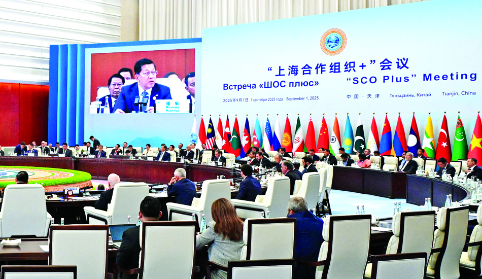 ပြည်ထောင်စုသမ္မတမြန်မာနိုင်ငံတော်ယာယီသမ္မတ နိုင်ငံတော်လုံခြုံရေးနှင့်အေးချမ်းသာယာရေးကော်မရှင်ဥက္ကဋ္ဌ ဗိုလ်ချုပ်မှူးကြီး မင်းအောင်လှိုင်သည် တရုတ်ပြည်သူ့သမ္မတနိုင်ငံ တီယန်ကျင်းမြို့ရှိ Tianjin Meijiang Convention Center ၌ ကျင်းပပြုလုပ်သည့် ရှန်ဟိုင်းပူးပေါင်းဆောင်ရွက်မှုအဖွဲ့ ထိပ်သီးအစည်းအဝေး (Shanghai Cooperation Organisation – SCO SUMMIT 2025 Plus) သို့ ပါဝင်တက်ရောက်ဆွေးနွေးသည်။