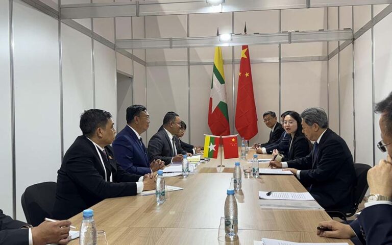ရုရှားဖက်ဒရေးရှင်းနိုင်ငံသို့ ရောက်ရှိနေစဉ် ခရီးစဉ်အတွင်း အမျိုးသားလုံခြုံရေးဆိုင်ရာ အကြံပေးပုဂ္ဂိုလ်ပြည်ထောင်စုဝန်ကြီးသည် ရုရှားနိုင်ငံအမျိုးသားလုံခြုံရေးကောင်စီ အတွင်းရေးမှူး H.E. Mr. Nikolay Patrushev နှင့် နှစ်နိုင်ငံတွေ့ဆုံ ဆွေးနွေးမှုအစည်းအဝေး (Bilateral Meeting) ပြုလုပ်ခဲ့ပြီး မြန်မာ-ရုရှား နှစ်နိုင်ငံအကြား ချစ်ကြည်ရင်းနှီးစွာ ပူးပေါင်းဆောင်ရွက်ရေး၊ မြန်မာ-ရုရှား နယ်ပယ်ပေါင်းစုံပူးပေါင်းဆောင်ရွက်ရေး၊ နည်းပညာဆိုင်ရာ ပူးပေါင်းဆောင်ရွက်ရေး၊ အကြမ်းဖက်မှုတိုက်ဖျက်ရေးနှင့် လုံခြုံရေးဆိုင်ရာ ပူးပေါင်းဆောင်ရွက်ရေးကဏ္ဍများနှင့် နိုင်ငံတော်စီမံအုပ်ချုပ်ရေးကောင်စီ၏ ရှေ့လုပ်ငန်းစဉ်(၅)ရပ် ချမှတ်၍ ဆောင်ရွက်နေမှုအခြေအနေများကို ဆွေးနွေးခဲ့ကြသည်။