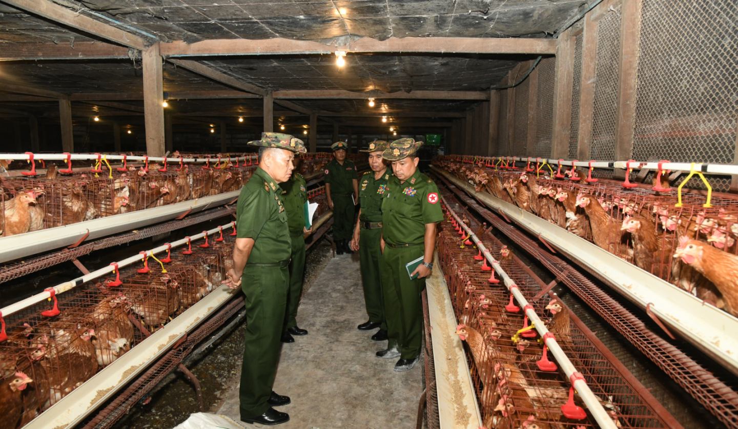 ထို့နောက် နိုင်ငံတော်စီမံအုပ်ချုပ်ရေးကောင်စီဒုတိယဥက္ကဋ္ဌ ဒုတိယဝန်ကြီးချုပ်နှင့် အဖွဲ့ဝင်များသည် တိုင်းစစ်ဌာနချုပ်အမှတ် (၄) စိုက်ပျိုး/မွေးမြူရေးစခန်းရှိ နို့စားနွားများ မွေးမြူထားရှိမှုများနှင့် အမှတ် (၃) စိုက်ပျိုး/မွေးမြူရေးစခန်းရှိ Novogen Brown ဥစားကြက်၊ Evaporated Cool-ing System ဖြင့် အဆင့်မြင့်အသားတိုးဝက်နှင့် ကာကီကင်းဘဲ မွေးမြူထားရှိမှု အခြေအနေများကို လိုက်လံကြည့်ရှုစစ်ဆေးပြီး တာဝန်ရှိသှုများကို လိုအပ်သည်များ မှာကြားခဲ့ကြောင်း သတင်းရရှိသည်။