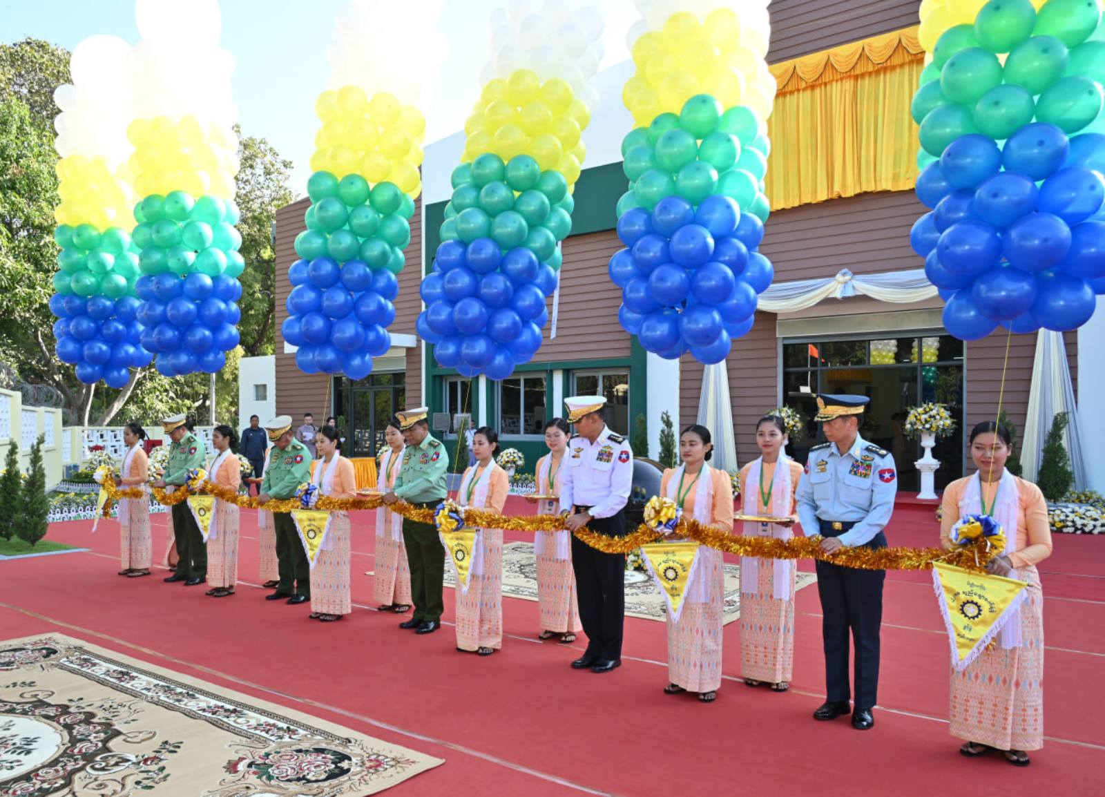 ဆက်လက်၍ ကောင်စီဝင်ညှိနှိုင်းကွပ်ကဲရေးမှူး (ကြည်း၊ ရေ၊ လေ) ဗိုလ်ချုပ်ကြီးမောင်မောင်အေး၊ ကာကွယ် ရေးဦးစီးချုပ် (ရေ) ဗိုလ်ချုပ်ကြီးထိန်ဝင်း၊ ကာကွယ်ရေးဦးစီးချုပ် (လေ) ဗိုလ်ချုပ်ကြီးထွန်းအောင်၊ ကောင်စီတွဲဖက်အတွင်းရေးမှူး ဗိုလ်ချုပ်ကြီးရဲဝင်းဦးနှင့် ကောင်စီဝင်ဗိုလ်ချုပ်ကြီး ညိုစောတို့က ဖွင့်ပွဲအခမ်းအနားအား ဖဲကြိုးဖြတ် ဖွင့်လှစ်ပေးသည်။ ထို့နောက် နိုင်ငံတော်စီမံအုပ်ချုပ်ရေးကောင်စီဥက္ကဋ္ဌ တပ်မတော်ကာကွယ်ရေး ဦးစီးချုပ်က စက်ရုံဆိုင်းဘုတ်အား စက်ခလုတ်နှိပ်ဖွင့်လှစ်ပေးပြီး စက်ရုံကမ္ပည်းမော်ကွန်းအား အမွှေးနံ့သာရည်များ ပက်ဖျန်းပေးသည်။