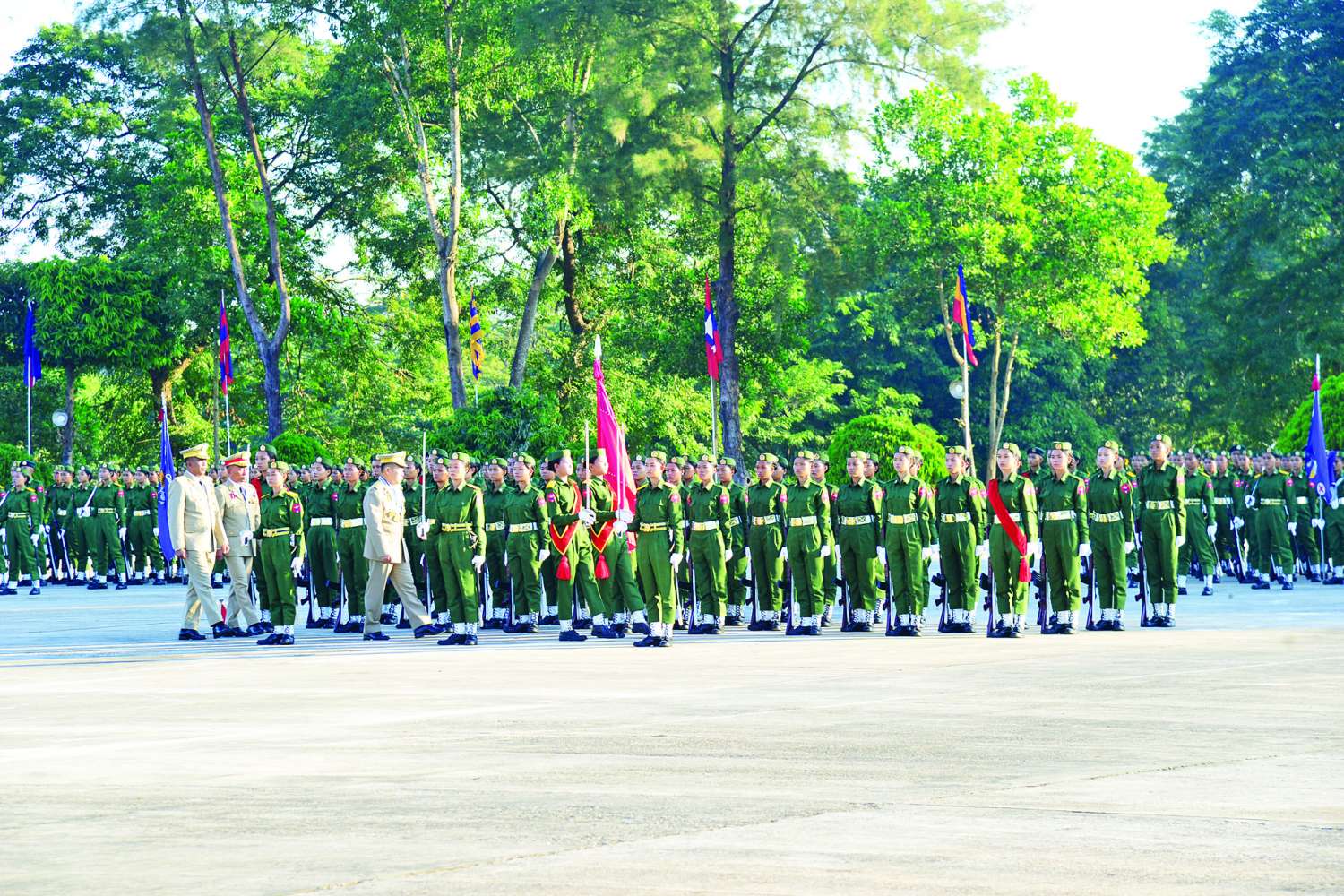 ဦးစွာ နိုင်ငံတော်လုံခြုံရေးနှင့်အေးချမ်းသာယာရေးကော်မရှင်ဒုတိယဥက္ကဋ္ဌ ဒုတိယတပ်မတော်ကာကွယ်ရေးဦးစီးချုပ် ကာကွယ်ရေးဦးစီးချုပ်(ကြည်း) ဒုတိယဗိုလ်ချုပ်မှူးကြီး သီရိပျံချီမဟာသရေစည်သူ စိုးဝင်းက သင်တန်းဆင်းတပ်ခွဲများ၏ အလေးပြုခြင်းကို ခံယူပြီး အလံတော်အဖွဲ့နှင့် ကျောင်းဆင်းတပ်ခွဲများအား စစ်ဆေးသည်။ ထို့နောက် ဒုတိယတပ်မတော်ကာကွယ်ရေးဦးစီးချုပ်အား ကျောင်းဆင်းတပ်ခွဲများက အနှေးလျှောက်၊ အမြန်လျှောက်ဖြင့် ချီတက်အလေးပြုကြသည်။