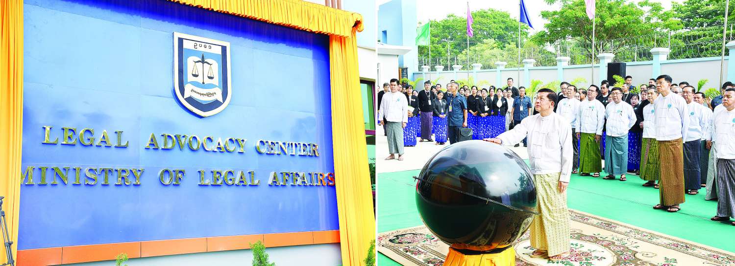 ဥပဒေရေးရာဝန်ကြီးဌာန၊ ဥပဒေအသိပညာပြန့်ပွားရေး သင်တန်းကျောင်း LEGAL ADVOCACY CENTER (LAC) ဖွင့်ပွဲအခမ်းအနားကို ယနေ့နံနက်ပိုင်းတွင် နေပြည်တော်ကောင်စီနယ်မြေ၊ ဥတ္တရသီရိမြို့နယ်၊ ဇဝနသိဒ္ဓိရပ်ကွက်ရှိ အဆိုပါသင်တန်းကျောင်း၌ ကျင်းပပြုလုပ်ရာ နိုင်ငံတော်စီမံအုပ်ချုပ်ရေးကောင်စီဥက္ကဋ္ဌ နိုင်ငံတော်ဝန်ကြီးချုပ် ဗိုလ်ချုပ်မှူးကြီးမင်းအောင်လှိုင် တက်ရောက်ဖွင့်လှစ်ပေးပြီး အမှာစကား ပြောကြားသည်။