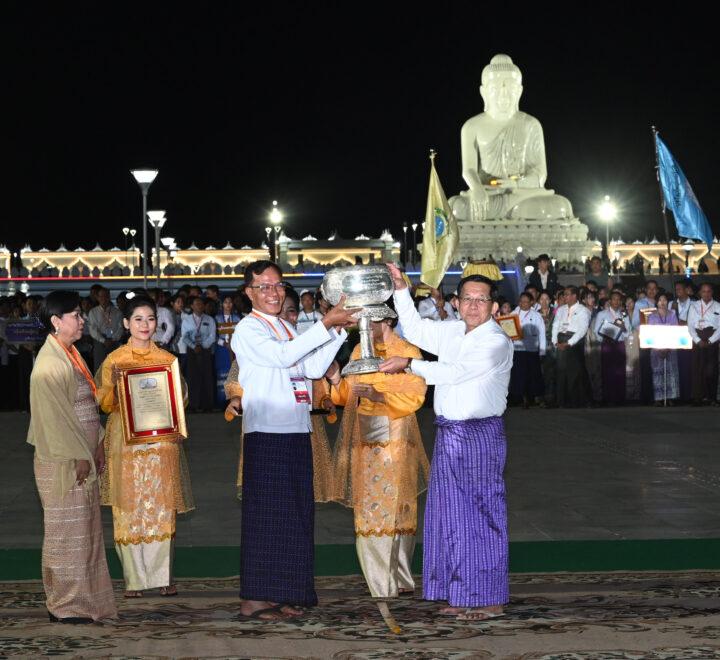 ပြည်ထောင်စုနယ်မြေ နေပြည်တော် ဒက္ခိဏသီရိမြို့နယ်ရှိ မာရဝိဇယဗုဒ္ဓရုပ်ပွားတော်မြတ်ကြီး ၂၀၂၅ ခုနှစ် တန်ဆောင်တိုင်မီးထွန်းပွဲတော် မီးပုံးပျံလွှတ်တင်ပူဇော်ပြိုင်ပွဲနှင့် မသိုးရွှေကြာသင်္ကန်း ရက်လုပ်ပူဇော်ပြိုင်ပွဲ ဆုချီးမြှင့်ပွဲအခမ်းအနားကို ယနေ့ညပိုင်းတွင် မာရဝိဇယဗုဒ္ဓဥယျာဉ်တော်အတွင်းရှိ ရေပန်းရင်ပြင်တော်၌ စည်ကားသိုက်မြိုက်စွာဖြင့် ကျင်းပပြုလုပ်ရာ ပြည်ထောင်စုသမ္မတမြန်မာနိုင်ငံတော်ယာယီသမ္မတ နိုင်ငံတော်လုံခြုံရေးနှင့်အေးချမ်းသာယာရေးကော်မရှင်ဥက္ကဋ္ဌ ဗိုလ်ချုပ်မှူးကြီး မင်းအောင်လှိုင် တက်ရောက်ချီးမြှင့်သည်။