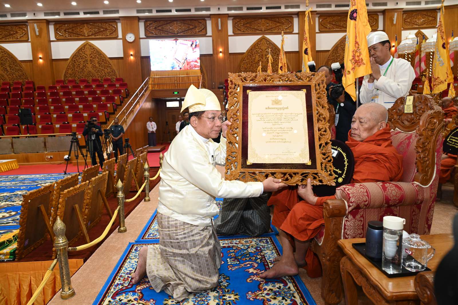 ၂ဝ၂၅ ခုနှစ် သာသနာတော်ဆိုင်ရာ ဘွဲ့တံဆိပ်တော်များ ဆက်ကပ်ပူဇော်ခြင်း မဟာမင်္ဂလာအခမ်းအနားနှင့် ဆွမ်းဆန်စိမ်းလောင်းလှူပွဲ အခမ်းအနားကျင်းပ