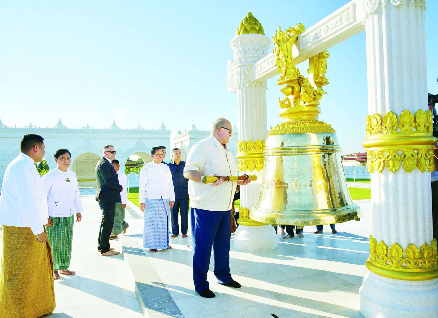 ယင်းနောက် ဘယ်လာရုစ်သမ္မတနိုင်ငံသမ္မတနှင့် ပြည်ထောင်စုသမ္မတမြန်မာနိုင်ငံတော်ယာယီသမ္မတ နိုင်ငံတော်လုံခြုံရေးနှင့်အေးချမ်းသာယာရေးကော်မရှင်ဥက္ကဋ္ဌတို့သည် သဒ္ဒါဓိပတိ ခေါင်းလောင်းတော်ထိုး၍ ကုသိုလ်ပြုကြသည်။