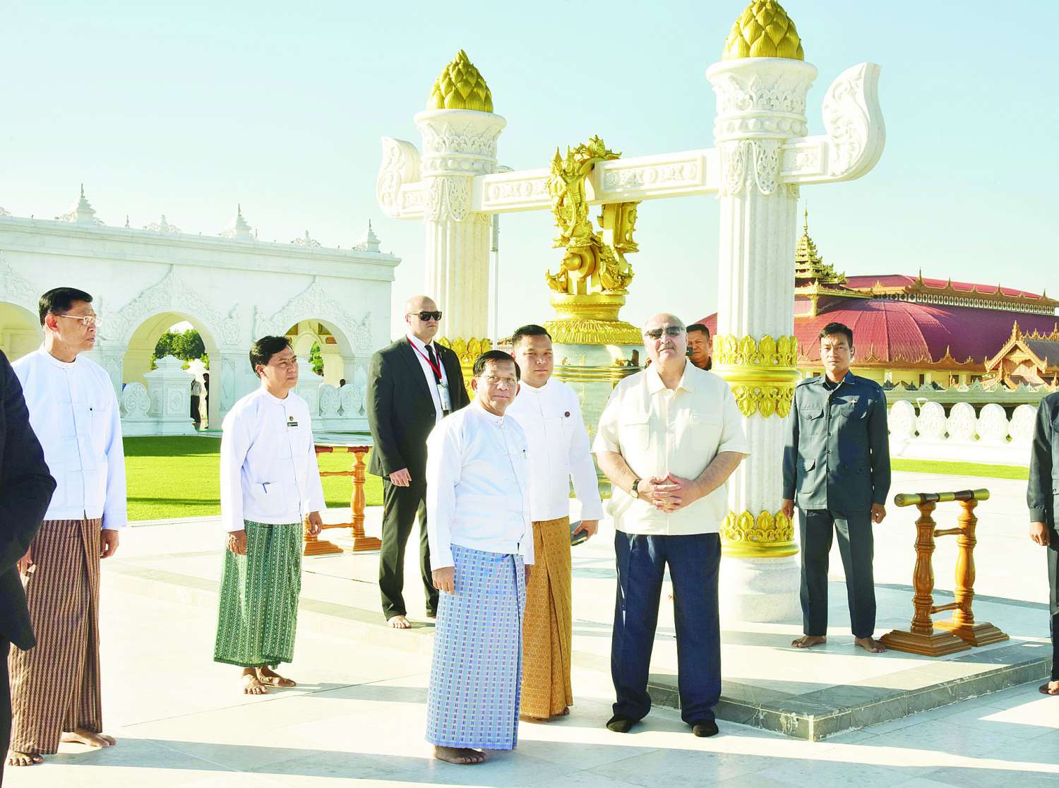 ဘယ်လာရုစ်သမ္မတနိုင်ငံသမ္မတ H.E. Mr. Aleksandr Lukashenko နှင့် ပြည်ထောင်စုသမ္မတမြန်မာနိုင်ငံတော်ယာယီသမ္မတ နိုင်ငံတော်လုံခြုံရေးနှင့်အေးချမ်းသာယာရေးကော်မရှင်ဥက္ကဋ္ဌ ဗိုလ်ချုပ်မှူးကြီး မင်းအောင်လှိုင် မာရဝိဇယဗုဒ္ဓရုပ်ပွားတော်မြတ်ကြီးအား ဖူးမြော်ကြည်ညို