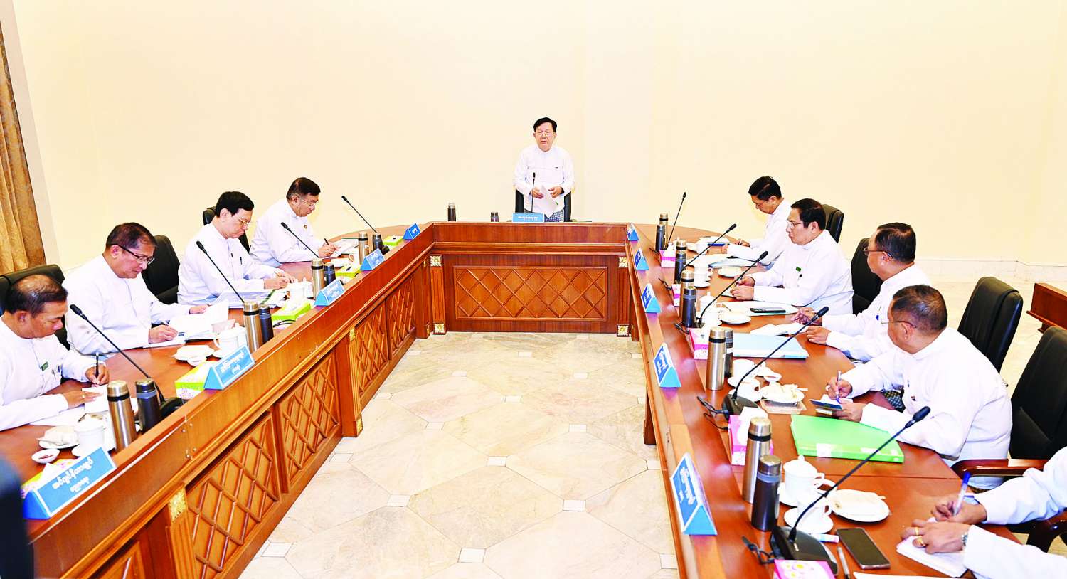 အစည်းအဝေးတွင် နိုင်ငံတော်စီမံအုပ်ချုပ်ရေးကောင်စီအတွင်းရေးမှူးက ပညာရေးကို ကမ္ဘာ့လူမှုအသိုင်းအဝိုင်းက မည်မျှအလေးထားသည်ကို ကြည့်မည်ဆိုပါက စာသင်ကျောင်းများကို စစ်ရေးဆိုင်ရာအဖြစ် အသုံးပြုခြင်းများ၊ စာသင်ကျောင်းများကို ပစ်မှတ်ထားတိုက်ခိုက်ခြင်းများကို တားမြစ်ထားသည့် ကုလသမဂ္ဂလုံခြုံရေးကောင်စီ ဆုံးဖြတ်ချက်အမှတ်၊ ၂၆ဝ၁ (၂ဝ၂၁) ကို လုံခြုံရေးကောင်စီအဖွဲ့ဝင် (၁၅) နိုင်ငံက တစ်ညီတစ်ညွတ်တည်း ဆုံးဖြတ်ချက် ချမှတ်ခဲ့ကြကြောင်း၊ အဆိုပါ ဆုံးဖြတ်ချက်ထဲတွင် ပါဝင်သည့် အဓိကအချက်များအနေဖြင့် ကလေးများ၊ ကျောင်းများနှင့် ဆရာများကို မတိုက်ခိုက်ရန်၊ လက်နက်ကိုင်ပဋိပက္ခအတွင်းတွင် ပညာသင်ကြားခွင့်ကို အကာအကွယ်ပေးရန်၊ ကျောင်းများသည် ပညာရေးအတွက် လုံခြုံစိတ်ချရသည့်နေရာဖြစ်ရန်၊ ကျောင်းများသည် အရပ်ဖက်စရိုက်လက္ခဏာရှိသည်ဖြစ်၍ လေးစားကာကွယ်ရန်၊ လက်နက်ကိုင်ပဋိပက္ခ ဖြစ်နေပါကလည်း ပညာသင်ကြားခွင့်ကို လွယ်ကူချောမွေ့စွာ ဆက်လက်ရရှိရန် ဆိုသည့်အချက်များပင်ဖြစ်ကြောင်း။