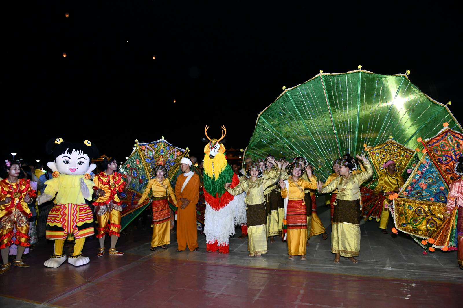 မီးပုံးပျံများ လွှတ်တင်ရန် ပြင်ဆင်မှုများ ဆောင်ရွက်နေချိန်တွင် တိုင်းရင်းသားယဉ်ကျေးမှုအဖွဲ့များက တိုင်းရင်းသားရိုးရာအကအလှများဖြင့် ယိမ်းအကအလှများ၊ တေးသီချင်းများဖြင့် သီဆိုကပြ ဖျော်ဖြေတင်ဆက်ခဲ့ကြသည်။