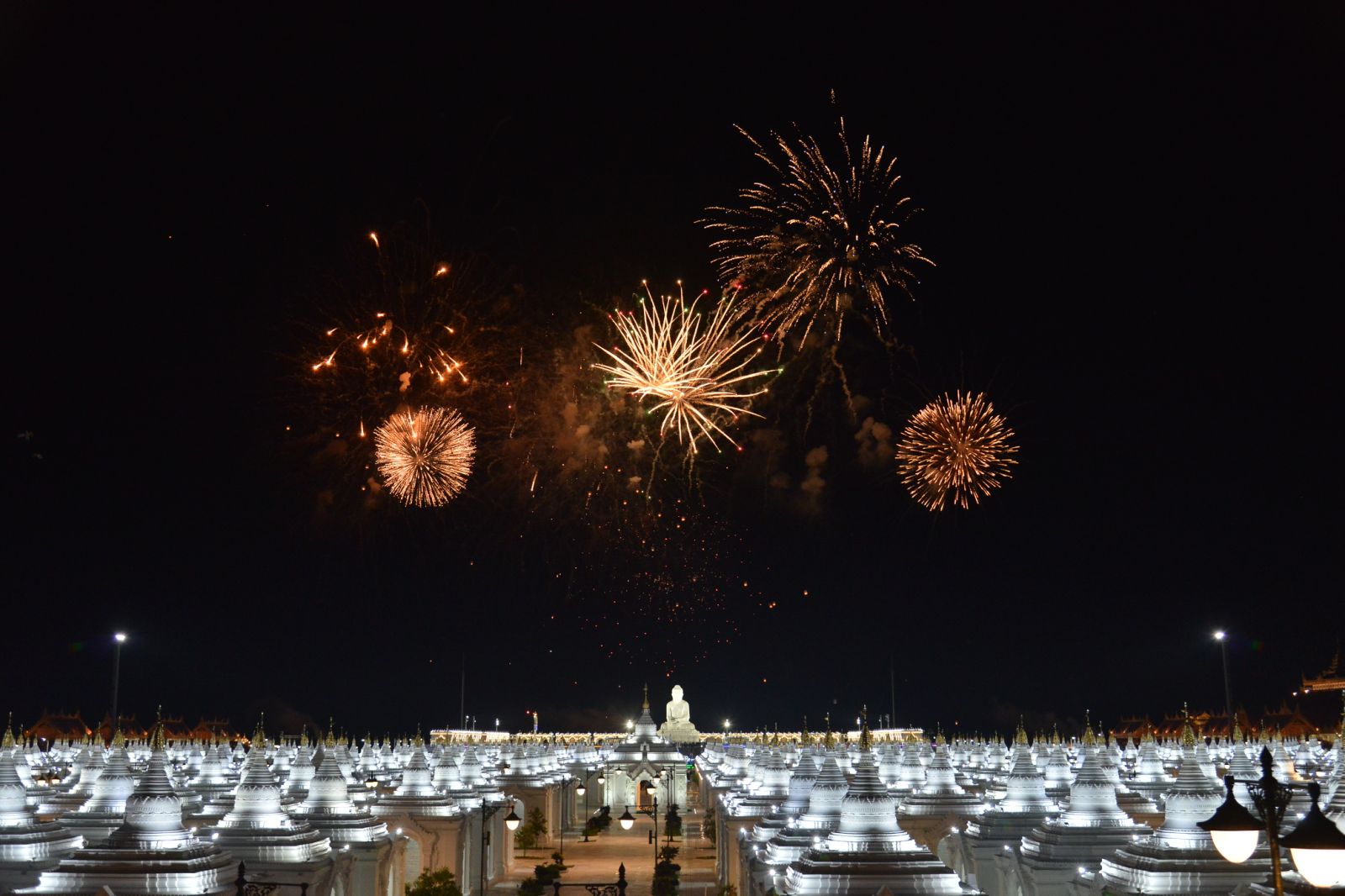 ထို့နောက် နိုင်ငံတော်စီမံအုပ်ချုပ်ရေးကောင်စီဥက္ကဋ္ဌ နိုင်ငံတော်ဝန်ကြီးချုပ်နှင့်ဇနီး၊ အဖွဲ့ဝင်များသည် အခမ်းအနားတက်ရောက်လာကြသူများနှင့်အတူ မီးပုံးပျံငယ်များကို လွှတ်တင်ပူဇော်ကြသည်။