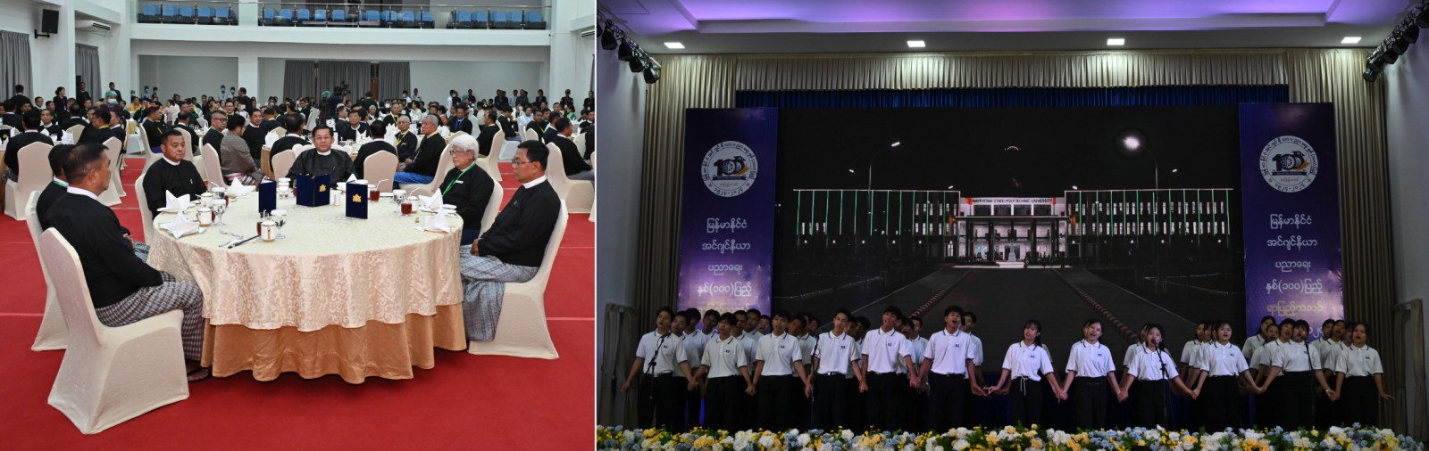 မြန်မာနိုင်ငံအင်ဂျင်နီယာပညာရေး နှစ် (၁၀၀)ပြည့် ရာပြည့်သဘင်နှင့် Naypyitaw State Polytechnic University ဖွင့်ပွဲ အထိမ်းအမှတ် ဂုဏ်ပြုညစာစားပွဲအခမ်းအနားကျင်းပ နိုင်ငံတော်စီမံအုပ်ချုပ်ရေးကောင်စီဥက္ကဋ္ဌ နိုင်ငံတော်ဝန်ကြီးချုပ် ဗိုလ်ချုပ်မှူးကြီး မင်းအောင်လှိုင် တက်ရောက်ချီးမြှင့်