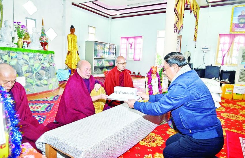 နိုင်ငံတော်စီမံအုပ်ချုပ်ရေးကောင်စီဥက္ကဋ္ဌ နိုင်ငံတော်ဝန်ကြီးချုပ် ဗိုလ်ချုပ်မှူးကြီး မင်းအောင်လှိုင်နှင့် ဇနီး ဒေါ်ကြူကြူလှ မန္တလေးမြို့ မဟာဝိဇိတာရုံပရိယတ္တိစာသင်တိုက် ဦးစီးပဓာနနာယက ဆရာတော်ကြီး၏ ကျန်းမာရေးအခြေအနေများအား သွားရောက်ကြည့်ရှု၊ လိုအပ်သည်များ ဖြည့်ဆည်းဆောင်ရွက်