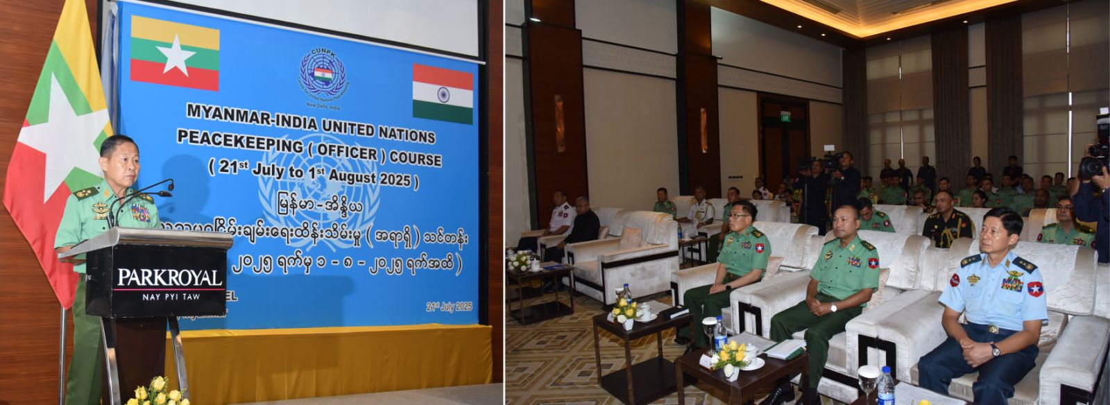 မြန်မာ့တပ်မတော်မှအရာရှိ၊ စစ်သည်များအနေဖြင့် ကုလသမဂ္ဂငြိမ်းချမ်းရေး ထိန်းသိမ်းစောင့်ရှောက်မှုဆိုင်ရာ လုပ်ငန်းတာဝန်များသိရှိနိုင်စေရန်အတွက် မြန်မာ့တပ်မတော်နှင့် အိန္ဒိယတပ်မတော်တို့ ပူးပေါင်းဖွင့်လှစ်သော ကုလသမဂ္ဂ ငြိမ်းချမ်းရေးထိန်းသိမ်းမှုဆိုင်ရာသင်တန်း UN Peacekeeping Officer Course ဖွင့်ပွဲအခမ်းအနားကို ယနေ့နံနက်ပိုင်းတွင် နေပြည်တော်ရှိ Park Royal ဟိုတယ်၌ ပြုလုပ်သည်။