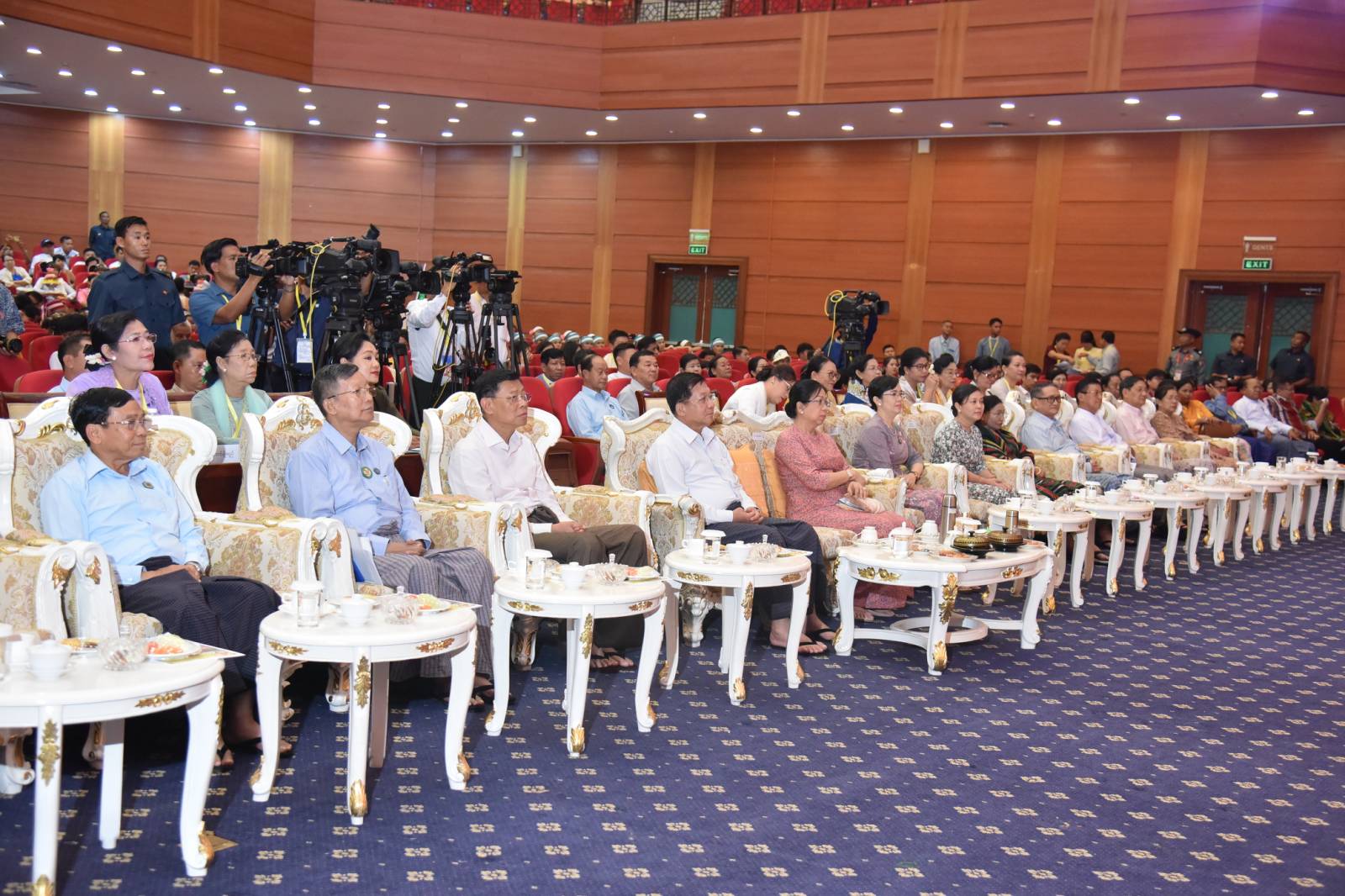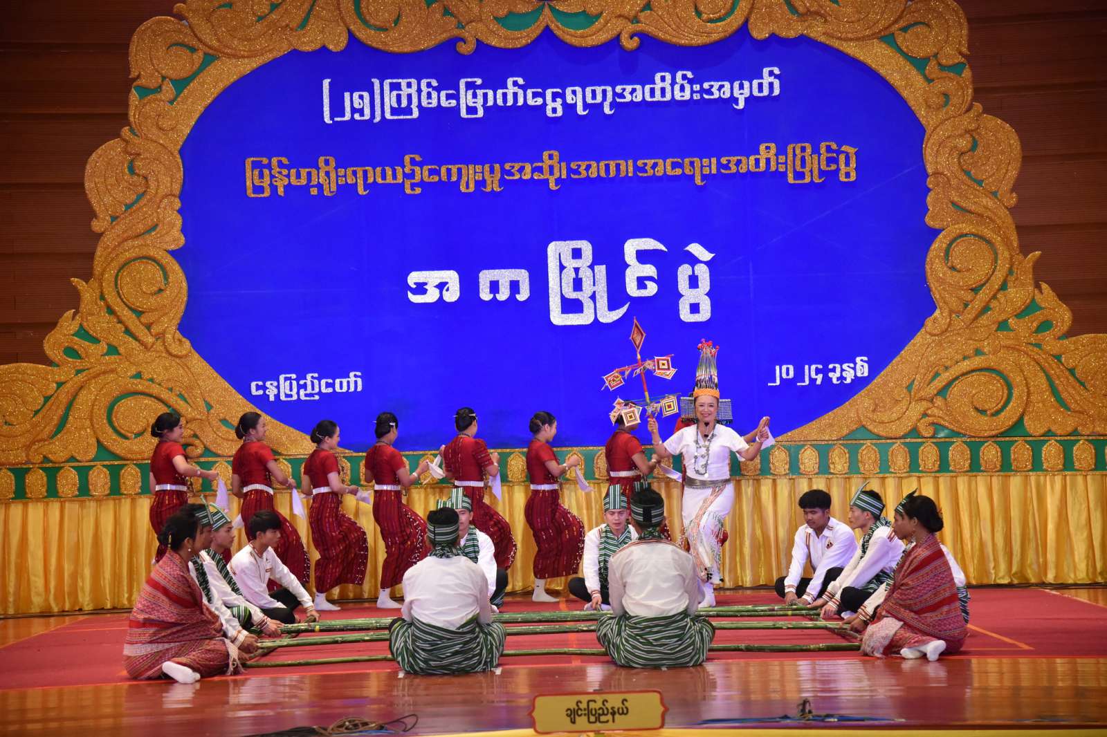 နိုင်ငံတော်စီမံအုပ်ချုပ်ရေးကောင်စီ ဥက္ကဋ္ဌ နိုင်ငံတော်ဝန်ကြီးချုပ် ဗိုလ်ချုပ်မှူးကြီး မင်းအောင်လှိုင်နှင့် ဇနီး ဒေါ်ကြူကြူလှ (၂၅)ကြိမ်မြောက် ငွေရတုအထိမ်းအမှတ် မြန်မာ့ရိုးရာယဉ်ကျေးမှု အဆို ၊ အက၊ အရေး၊ အတီးပြိုင်ပွဲ ကျင်းပနေမှုများကို တက်ရောက်ကြည့်ရှုအားပေး