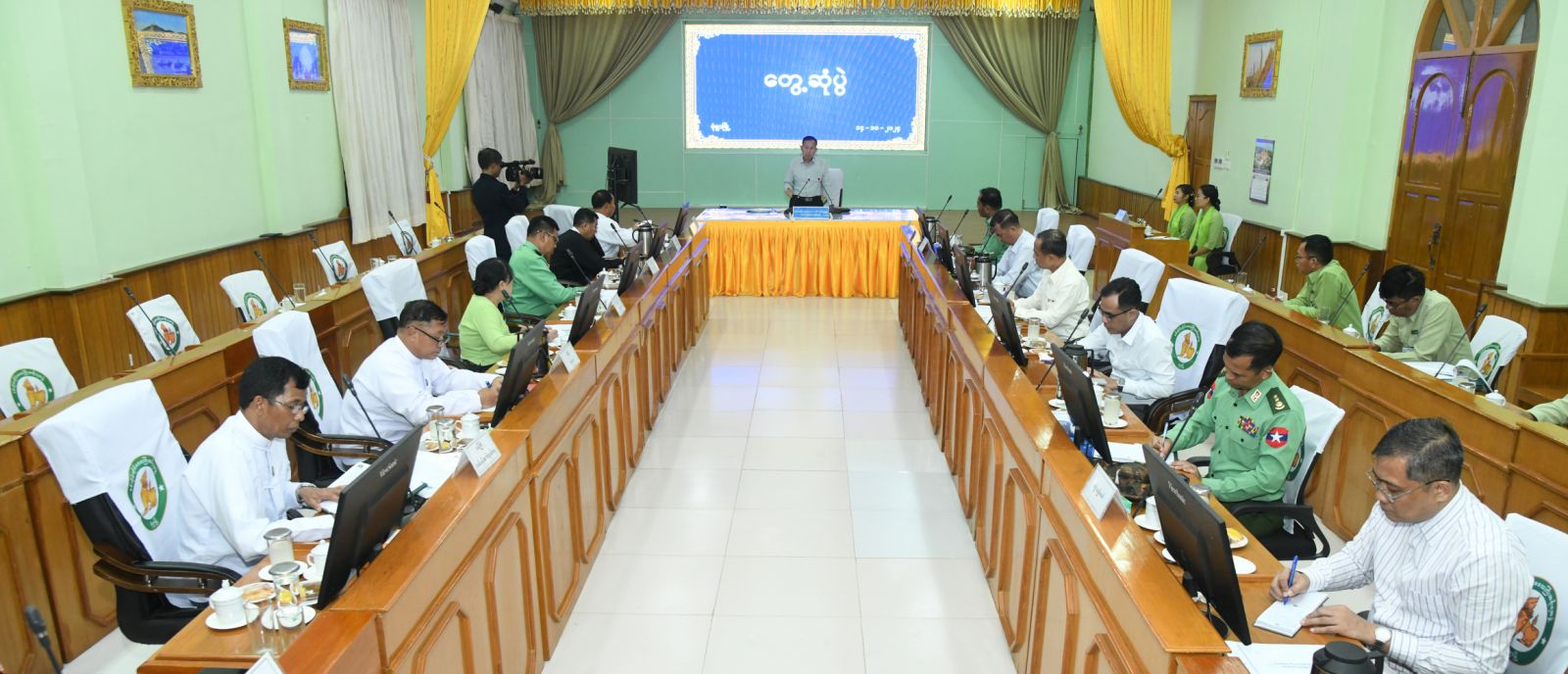 ဦးစွာ တိုင်းဒေသကြီးဝန်ကြီးချုပ်ဦးမြတ်ကျော်နှင့် တိုင်းဒေသကြီးအစိုးရအဖွဲ့ဝင် ဝန်ကြီးများက တိုင်းဒေသကြီးအတွင်းရှိ အုပ်ချုပ်ရေး၊ စီးပွားရေး၊ လူမှုရေးဆိုင်ရာကိစ္စရပ်များ၊ နိုင်ငံ့စီးပွားမြှင့်တင်ရေးရန်ပုံငွေမှ ဒေသတွင်းစိုက်ပျိုးမွေးမြူရေးနှင့် MSME လုပ်ငန်းများအတွက် ချေးငွေများထုတ်ချေးထားမှု၊ ပညာရေး၊ ကျန်းမာရေး စသည့်ကဏ္ဍအလိုက် ဒေသဆိုင်ရာ အချက်အလက်များ၊ နယ်မြေဒေသတည်ငြိမ်အေးချမ်းရေးနှင့် လုံခြုံရေးအတွက် ပြည်သူ့လုံခြုံရေးနှင့် အကြမ်းဖက်နှိမ်နင်းရေးအဖွဲ့များ ဖွဲ့စည်းထားရှိမှု၊ လူဦးရေနှင့်အိမ်အကြောင်းအရာ သန်းခေါင်စာရင်းကောက်ယူရေးလုပ်ငန်းများတွင် ဌာနဆိုင်ရာအဖွဲ့ဝင်များနှင့်အတူ ပူးပေါင်းပါဝင်ဆောင်ရွက်ပေးလျက်ရှိမှု၊ နယ်မြေဒေသတည်ငြိမ်အေးချမ်းရေးအတွက် လုံခြုံရေးဆိုင်ရာတာဝန်ရှိသူများ၊ ဌာနဆိုင်ရာတာဝန်ရှိသူများက အတူတကွဝိုင်းဝန်းဆောင်ရွက်လျက်ရှိမှု အခြေအနေများနှင့် အခြားဆောင်ရွက်နေမှုများကို သက်ဆိုင်ရာကဏ္ဍများအလိုက် ရှင်းလင်းတင်ပြသည်။