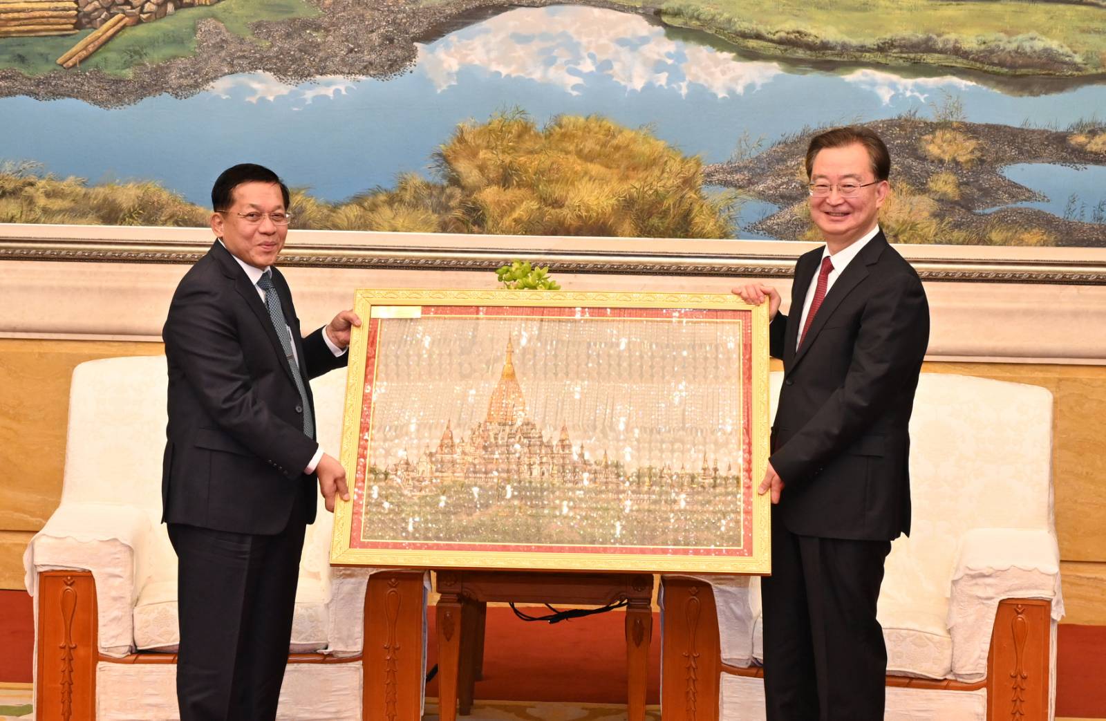 နိုင်ငံတော်စီမံအုပ်ချုပ်ရေးကောင်စီဥက္ကဋ္ဌ နိုင်ငံတော်ဝန်ကြီးချုပ် ဗိုလ်ချုပ်မှူးကြီး မင်းအောင်လှိုင် တရုတ်ကွန်မြူနစ်ပါတီ၊ ဗဟိုကော်မတီအဖွဲ့ဝင်နှင့် ယူနန်ပြည်နယ် ပါတီကော်မတီ အတွင်းရေးမှူး H.E. Mr. Wang Ning နှင့် တွေ့ဆုံဆွေးနွေး