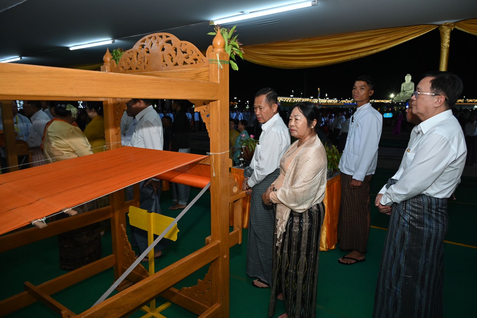 နိုင်ငံတော်စီမံအုပ်ချုပ်ရေးကောင်စီဥက္ကဋ္ဌ နိုင်ငံတော်ဝန်ကြီးချုပ် ဗိုလ်ချုပ်မှူးကြီး မင်းအောင်လှိုင်နှင့် ဇနီး ဒေါ်ကြူကြူလှ မာရဝိဇယဗုဒ္ဓရုပ်ပွားတော်မြတ်ကြီးအား ဒုတိယအကြိမ် မသိုးရွှေကြာသင်္ကန်းတော် ရက်လုပ်ပူဇော်ပွဲ ဖွင့်ပွဲအခမ်းအနားသို့ တက်ရောက်ပူဇော်