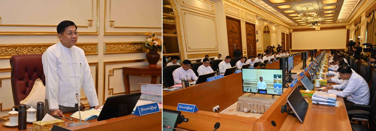 ပြည်ထောင်စုအစိုးရအဖွဲ့အစည်းအဝေး အမှတ်စဉ် (၆/၂၀၂၄) ကို ယနေ့မွန်းလွဲပိုင်းတွင် နေပြည်တော်ရှိ နိုင်ငံတော်စီမံအုပ်ချုပ်ရေးကောင်စီဥက္ကဋ္ဌရုံး အစည်းအဝေးခန်းမ၌ ကျင်းပရာ နိုင်ငံတော်စီမံအုပ်ချုပ်ရေးကောင်စီဥက္ကဋ္ဌ နိုင်ငံတော်ဝန်ကြီးချုပ် ဗိုလ်ချုပ်မှူးကြီး မင်းအောင်လှိုင် တက်ရောက်အမှာစကားပြောကြားသည်။