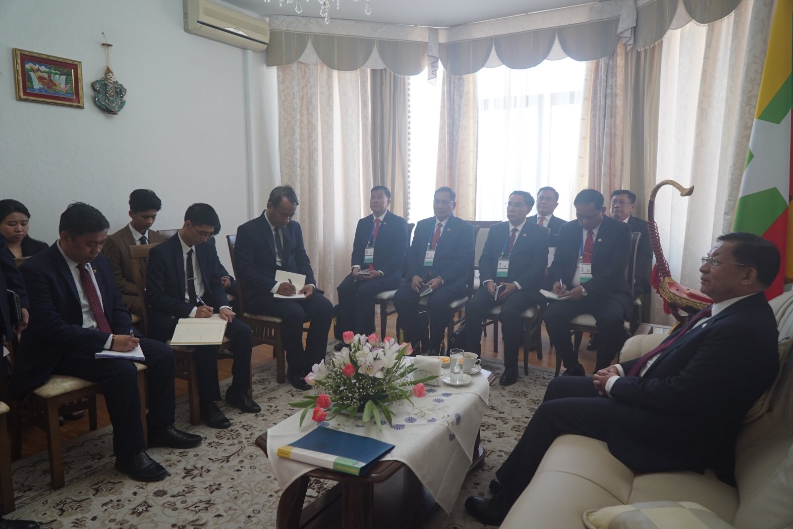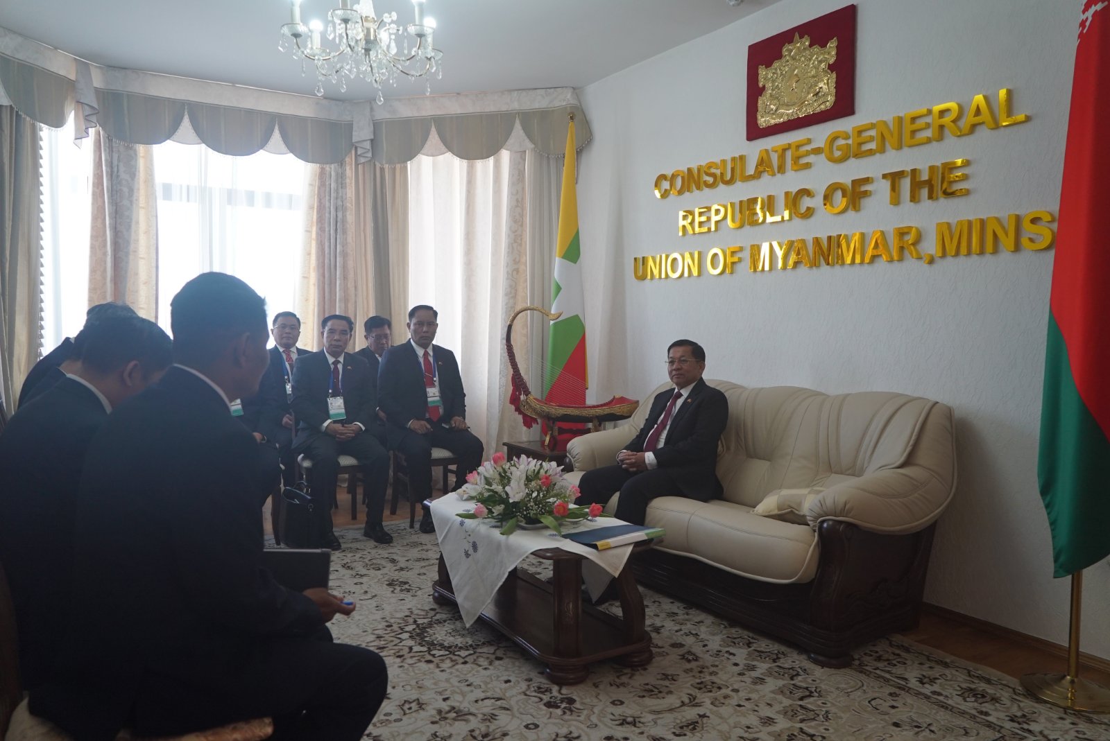 နိုင်ငံတော်စီမံအုပ်ချုပ်ရေးကောင်စီဥက္ကဋ္ဌ နိုင်ငံတော်ဝန်ကြီးချုပ် ဗိုလ်ချုပ်မှူးကြီး မင်းအောင်လှိုင် ဘယ်လာရုစ်နိုင်ငံ တွင် ပညာသင်ကြားလျက်ရှိသည့် သင်တန်းသားအရာရှိများအားတွေ့ဆုံအမှာစကားပြောကြား