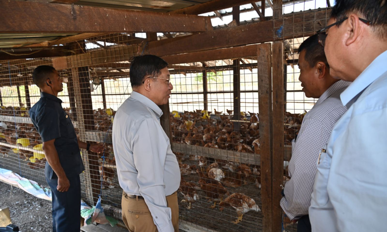 ထို့နောက် နိုင်ငံတော်စီမံအုပ်ချုပ်ရေးကောင်စီဥက္ကဋ္ဌ နိုင်ငံတော်ဝန်ကြီးချုပ်နှင့် အဖွဲ့ဝင်များသည် ကံကြီးမွေးမြူရေးဇုန်အတွင်းရှိ လုပ်ငန်းရှင် ဦးတင်မြိုင်၏ အသားတိုးဝက်မွေးမြူရေးခြံ၊ လုပ်ငန်းရှင် ဦးမြတ်စံ၏ အသားတိုးကြက်နှင့် ဥစားကြက်မွေးမြူရေးခြံ၊ ဦးတွမ်ခင်ဝင်း၏ နို့စားနွားနှင့် နွားသားပေါက် မွေးမြူရေးခြံတို့အတွင်း မွေးမြူရေးလုပ်ငန်းများ ဆောင်ရွက်ထားရှိမှုအခြေအနေများကို လိုက်လံကြည့်ရှုစစ်ဆေးခဲ့ပြီး တာဝန်ရှိသူများ၏ တင်ပြချက်များအပေါ် လိုအပ်သည်များ လမ်းညွှန်မှာကြားခဲ့သည်။