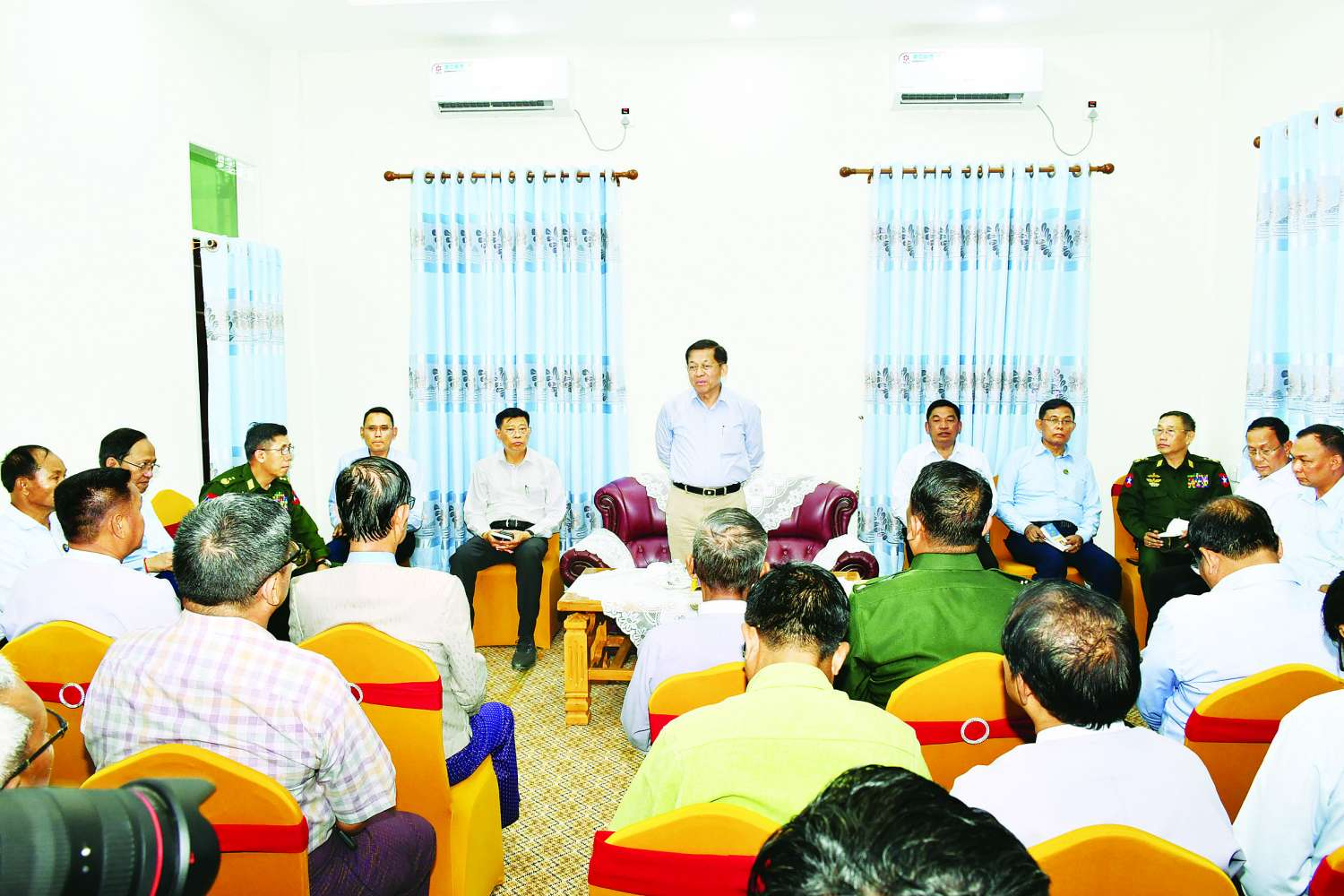 နိုင်ငံတော်စီမံအုပ်ချုပ်ရေးကောင်စီဥက္ကဋ္ဌ နိုင်ငံတော်ဝန်ကြီးချုပ် ဗိုလ်ချုပ်မှူးကြီး မင်းအောင်လှိုင် စစ်ကိုင်းမြို့နှင့် မန္တလေးမြို့တို့ရှိ ခရိုင်အဆင့် ဌာနဆိုင်ရာတာဝန်ရှိသူများနှင့် ရပ်မိရပ်ဖများအား သီးခြားစီတွေ့ဆုံ၍ ငလျင်ဘေးဒဏ်ထိခိုက်မှုများကြောင့် ပျက်စီးမှုများအပေါ် ပြန်လည်ထူထောင်ရေးနှင့်ပတ်သက်၍ ရှင်းလင်းပြောကြား၊ ပြန်လည်ထူထောင်ရေးလုပ်ငန်းများအတွက် ရန်ပုံငွေများပေးအပ်