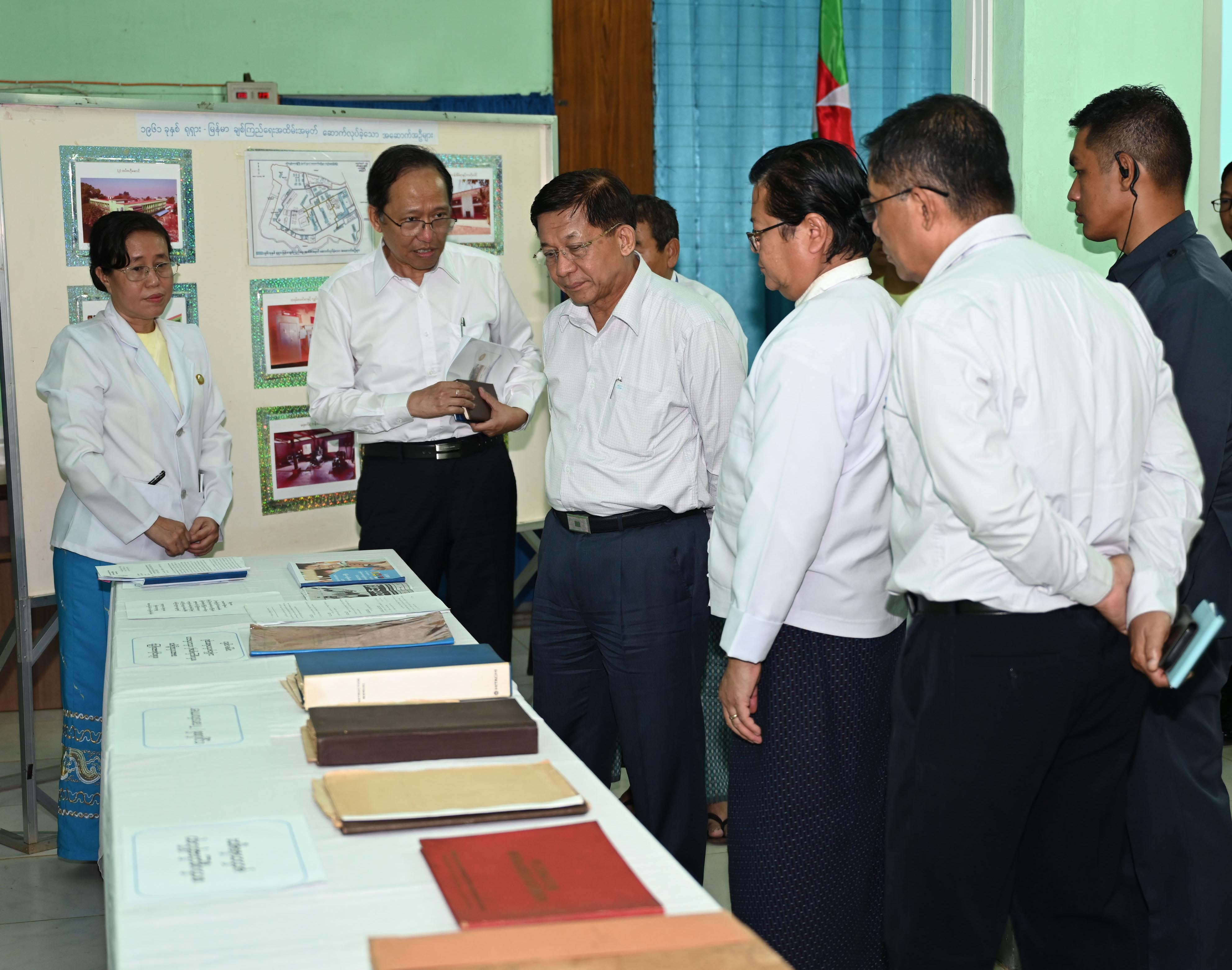 ထို့နောက် နိုင်ငံတော်စီမံအုပ်ချုပ်ရေးကောင်စီဥက္ကဋ္ဌ နိုင်ငံတော်ဝန်ကြီးချုပ်သည် ခင်းကျင်းပြသထားသည့် စဝ်စံထွန်းဆေးရုံကြီး အဆောက်အဦများ၊ စက်ပစ္စည်းများနှင့် ပတ်သက်သော မှတ်တမ်းစာအုပ်များအား ကြည့်ရှုပြီး တာဝန်ရှိသူများအား မှတ်တမ်းများကို စနစ်တကျဖြင့် ထိန်းသိမ်းရန်မှာကြားသည်။