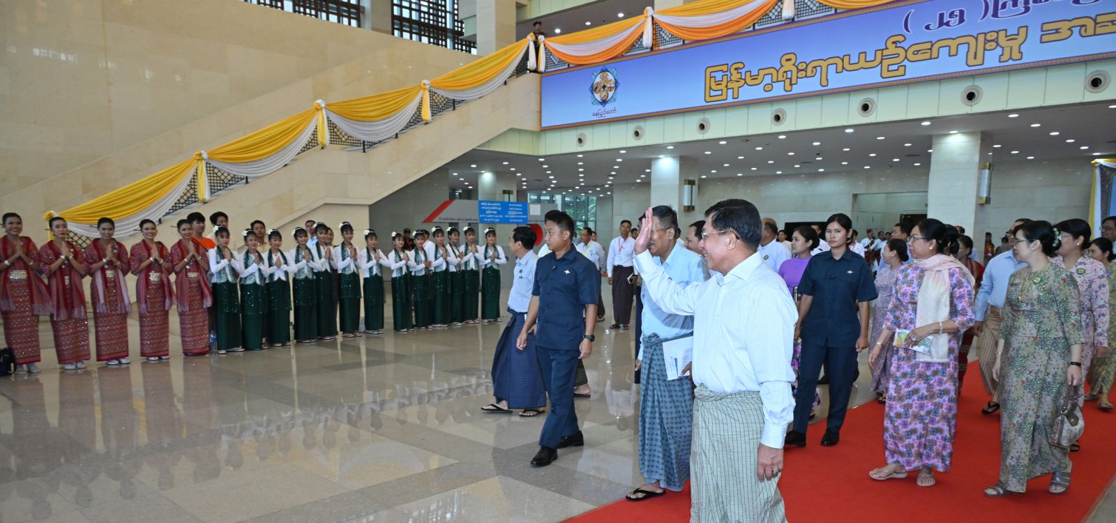 နိုင်ငံတော်စီမံအုပ်ချုပ်ရေးကောင်စီဥက္ကဋ္ဌ နိုင်ငံတော်ဝန်ကြီးချုပ် ဗိုလ်ချုပ်မှူးကြီး မင်းအောင်လှိုင်နှင့် ဇနီးဒေါ်ကြူကြူလှတို့သည် ယနေ့မွန်းလွဲပိုင်းတွင် မြန်မာအပြည်ပြည်ဆိုင်ရာကွန်ဗင်းရှင်းဗဟိုဌာန (၂) ၌ကျင်းပလျက်ရှိသည့် (၂၅) ကြိမ်မြောက်ငွေရတုအထိမ်းအမှတ် မြန်မာ့ရိုးရာယဉ်ကျေးမှု အဆို ၊ အက ၊ အရေး ၊ အတီးပြိုင်ပွဲ (ဗဟိုအဆင့်) ပြိုင်ပွဲယှဉ်ပြိုင်နေမှုများကို တက်ရောက်ကြည့်ရှုအားပေးသည်။