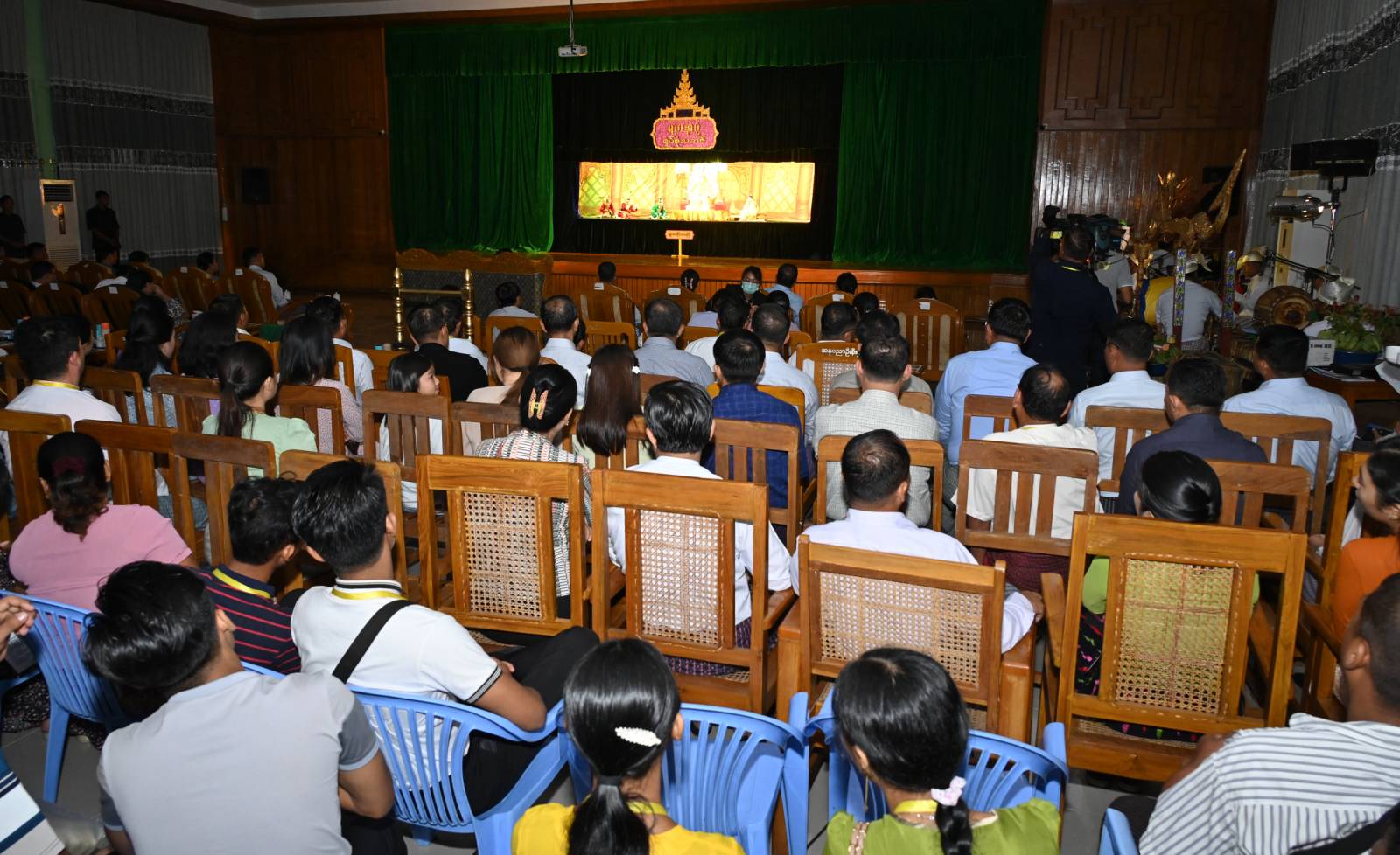 ယင်းနောက် ညပိုင်းတွင် နိုင်ငံတော်စီမံအုပ်ချုပ်ရေးကောင်စီဥက္ကဋ္ဌ နိုင်ငံတော်ဝန်ကြီးချုပ် ဗိုလ်ချုပ်မှူးကြီး မင်းအောင်လှိုင်နှင့် ဇနီးဒေါ်ကြူကြူလှတို့သည် ပြိုင်ပွဲများသို့ တက်ရောက်လာကြသူများနှင့်အတူ သာသနာရေးနှင့်ယဉ်ကျေးမှုဝန်ကြီးဌာနရှိ ယဉ်ကျေးမှုရတနာခန်းမ၌ ကျင်းပလျက်ရှိသည့် (၂၅) ကြိမ်မြောက် ငွေရတုအထိမ်းအမှတ် မြန်မာ့ရိုးရာယဉ်ကျေးမှု အဆို ၊ အက ၊ အရေး ၊ အတီးပြိုင်ပွဲ ရုပ်စုံသဘင် အဖွဲ့လိုက်ပြိုင်ပွဲသို့ တက်ရောက်ကြည့်ရှုအားပေးသည်။