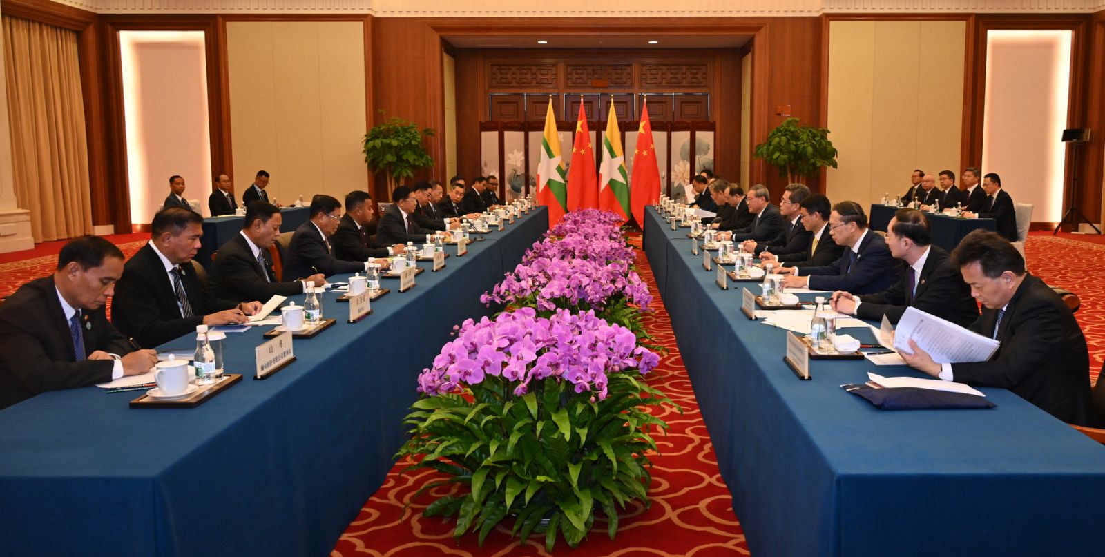 နိုင်ငံတော်စီမံအုပ်ချုပ်ရေးကောင်စီဥက္ကဋ္ဌ နိုင်ငံတော်ဝန်ကြီးချုပ် ဗိုလ်ချုပ်မှူးကြီး မင်းအောင်လှိုင် တရုတ်ပြည်သူ့သမ္မတနိုင်ငံ၊ ဝန်ကြီးချုပ် H.E. Mr. Li Qiang နှင့် တွေ့ဆုံဆွေးနွေး၊ ကြိုဆိုညစာစားပွဲအခမ်းအနားသို့ တက်ရောက်