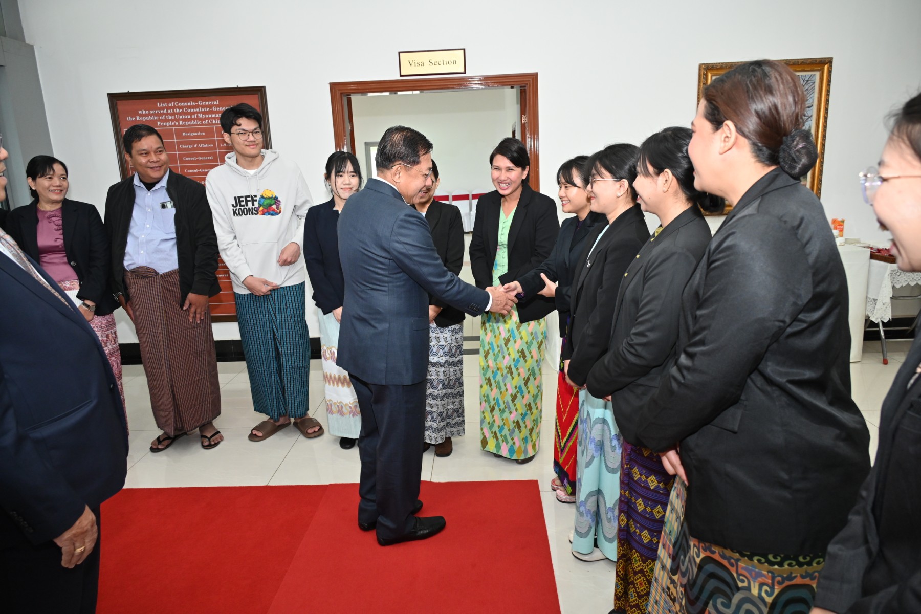 နိုင်ငံတော်စီမံအုပ်ချုပ်ရေးကောင်စီဥက္ကဋ္ဌ နိုင်ငံတော်ဝန်ကြီးချုပ် ဗိုလ်ချုပ်မှူးကြီး မင်းအောင်လှိုင် တရုတ်ပြည်သူ့သမ္မတနိုင်ငံ၊ ကူမင်းမြို့ရှိ မြန်မာကောင်စစ်ဝန်ချုပ်ရုံး ဝန်ထမ်းမိသားစုများ၊ ပညာတော်သင် သင်တန်းသားများအား တွေ့ဆုံအမှာစကားပြောကြား