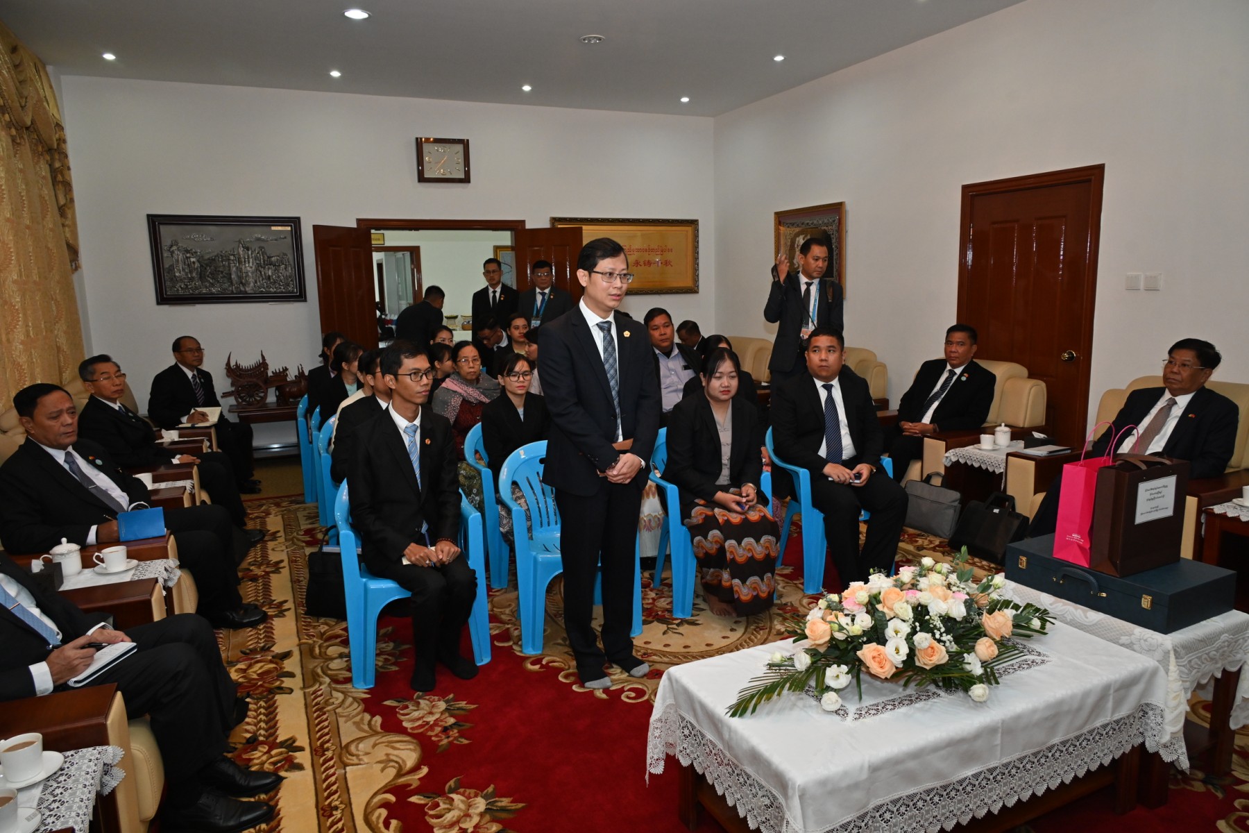 ဦးစွာ နိုင်ငံတော်စီမံအုပ်ချုပ်ရေးကောင်စီဥက္ကဋ္ဌ နိုင်ငံတော်ဝန်ကြီးချုပ်နှင့် အဖွဲ့ ဝင်များအား ကောင်စစ်ဝန်ချုပ်ရုံး ဝန်ထမ်းမိသားစုများက လှိုက်လှဲနွေးထွေးစွာ ကြိုဆို နှုတ်ဆက်ကြသည်။ ထို့နောက် ကောင်စစ်ဝန်ချုပ် ဦးသွင်ထက်လင်းနှင့် ဝန်ထမ်းများက တာဝန်ထမ်းဆောင်မှုများနှင့် ပတ်သက်၍လည်းကောင်း၊ ပညာတော်သင် သင်တန်းသားများက သင်တန်းတက်ရောက်မှုဆိုင်ရာများနှင့် ပတ်သက်၍လည်းကောင်း ရှင်းလင်းတင်ပြကြသည်။