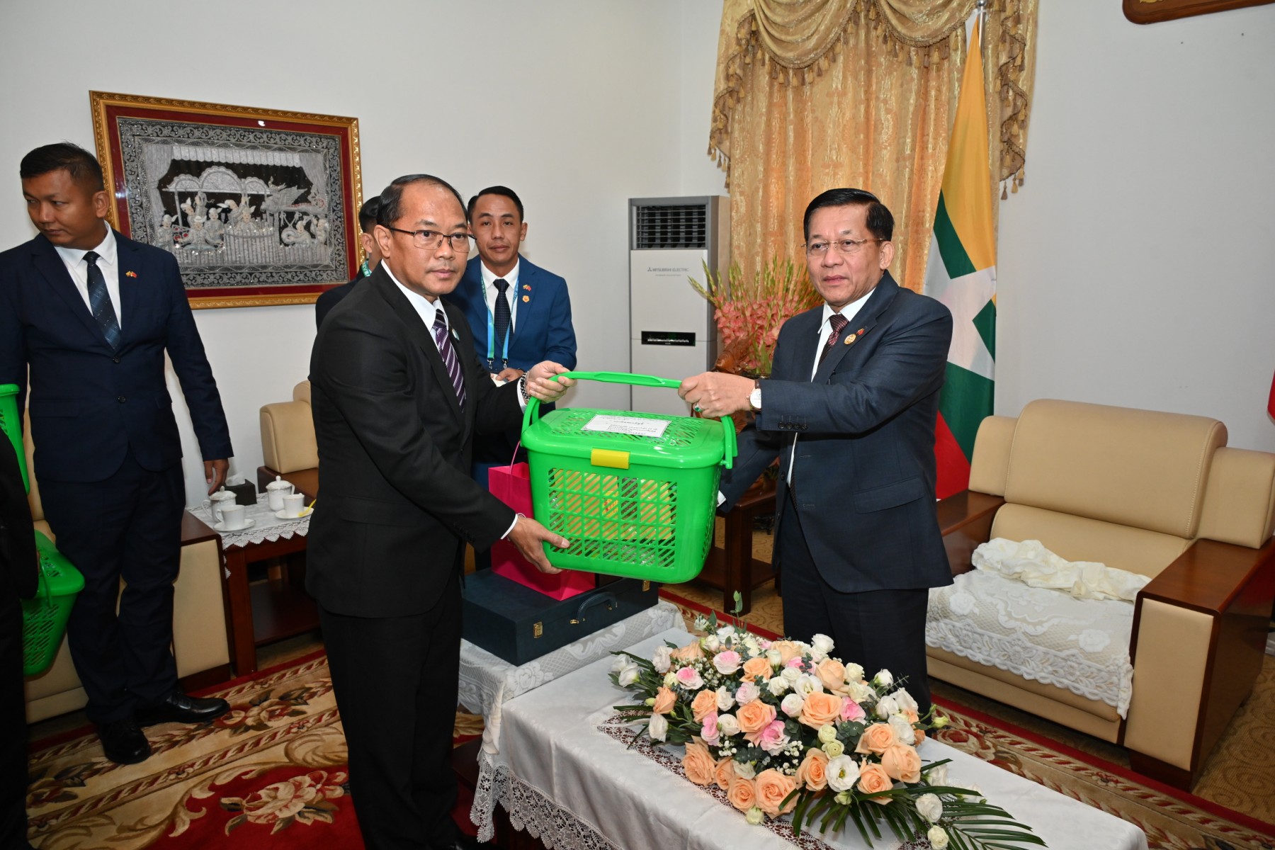 ယင်းနောက် နိုင်ငံတော်စီမံအုပ်ချုပ်ရေးကောင်စီဥက္ကဋ္ဌ နိုင်ငံတော်ဝန်ကြီးချုပ်က ကောင်စစ်ဝန်ချုပ်ရုံး ဝန်ထမ်းမိသားစုများနှင့် တရုတ်တစ်နိုင်ငံလုံးတွင် ပညာတော်သင်ကြားလျက် ရှိသည့် မြန်မာနိုင်ငံမှ စစ်ဘက်၊ အရပ်ဘက် သင်တန်းသား၊ သင်တန်းသူများအတွက် လက်ဆောင်ပစ္စည်းများနှင့် ချီးမြှင့်ထောက်ပံ့ငွေများကို ပေးအပ်ရာ တရုတ်နိုင်ငံဆိုင်ရာ မြန်မာနိုင်ငံသံအမတ်ကြီး၊ မြန်မာစစ်သံ(ကြည်း၊ ရေ၊ လေ)၊ ကူမင်းမြို့ မြန်မာကောင်စစ်ဝန်ချုပ်နှင့် သင်တန်းသား၊ သင်တန်းသူများက လက်ခံရ ယူခဲ့ကြသည်။