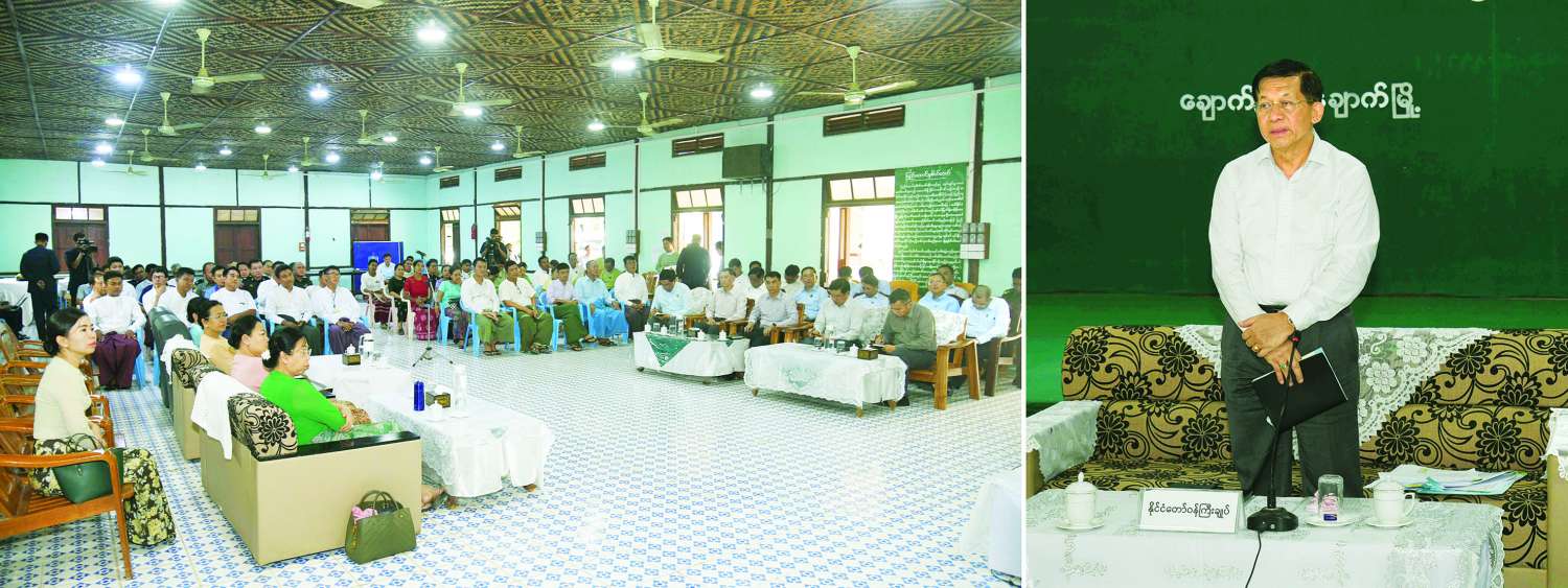 နိုင်ငံတော်စီမံအုပ်ချုပ်ရေးကောင်စီဥက္ကဋ္ဌ နိုင်ငံတော်ဝန်ကြီးချုပ် ဗိုလ်ချုပ်မှူးကြီးမင်းအောင်လှိုင် မကွေးတိုင်းဒေသကြီး၊ ချောက်မြို့ရှိ ခရိုင်အဆင့်ဌာနဆိုင်ရာများ၊ မြို့မိမြို့ဖများနှင့်တွေ့ဆုံ၍ ဒေသဖွံ့ဖြိုးတိုးတက်ရေးဆိုင်ရာများ ဆွေးနွေးပြောကြား