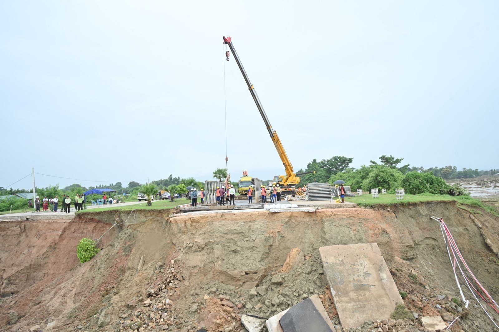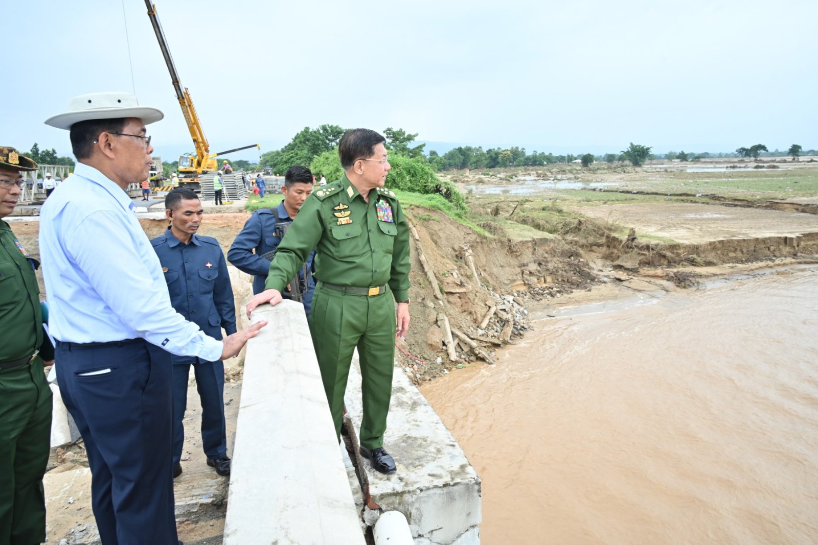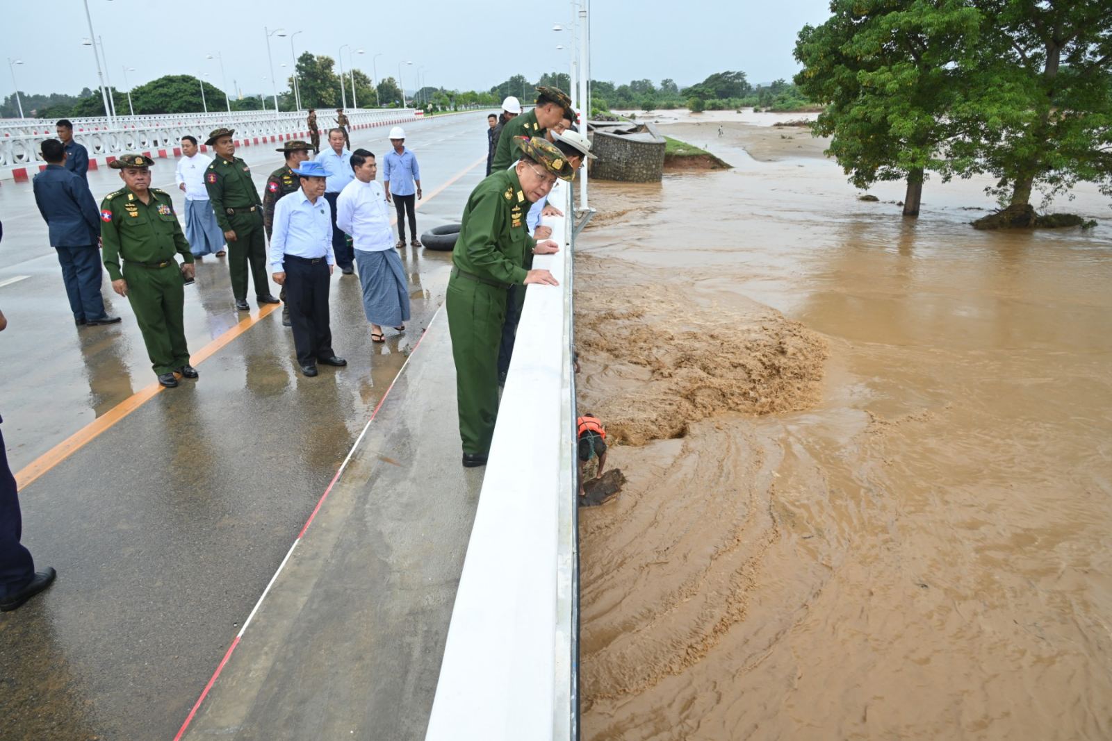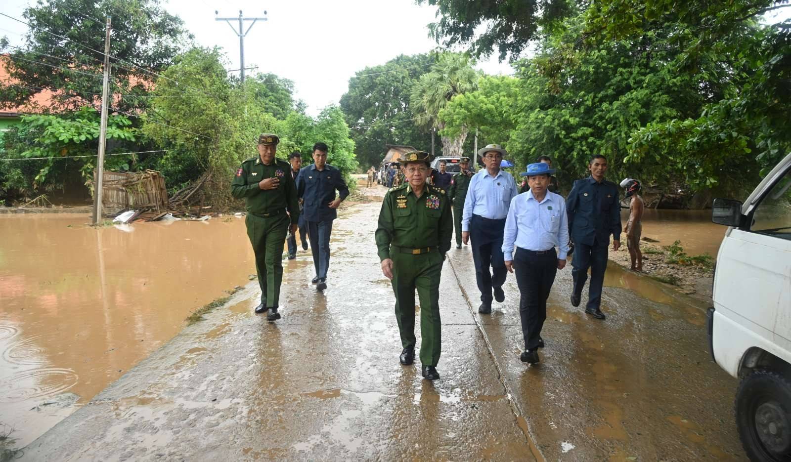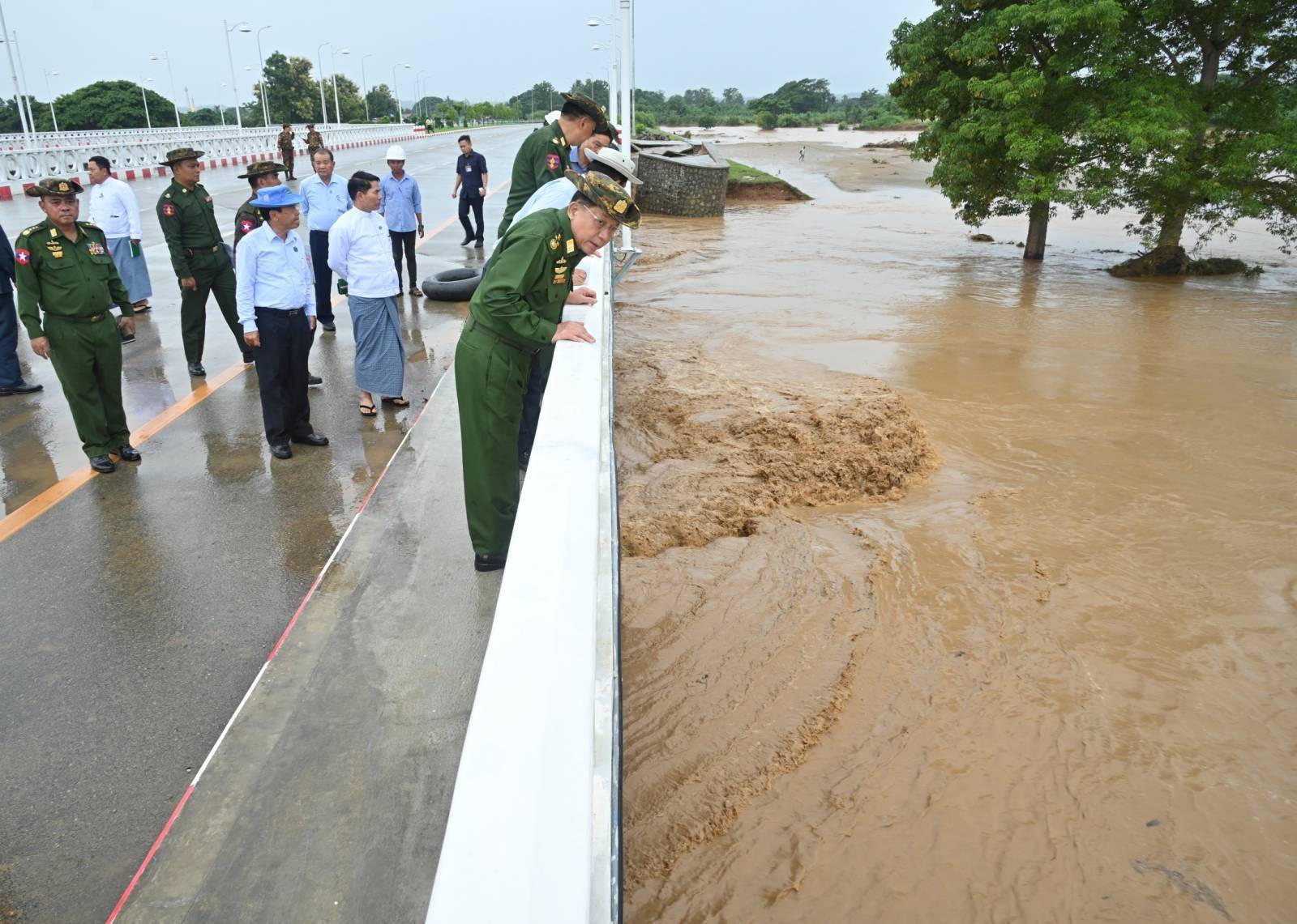 ထို့သို့ ကူညီကယ်ဆယ်ရေးလုပ်ငန်းဆောင်ရွက်နေမှုများ၊ ရေကြီးရေလျှံမှုများကြောင့် ပျက်စီးမှုများဖြစ်ပေါ်ခဲ့သည့် လမ်း၊ တံတားများ လမ်းပန်းဆက်သွယ်မှု မပြတ်တောက်စေရေးအတွက် ယာယီပြင်ဆင်ဆောင်ရွက်နေမှုများနှင့် ရေကြီးရေလျှံမှုအခြေအနေများကို နိုင်ငံတော်စီမံအုပ်ချုပ်ရေးကောင်စီဥက္ကဋ္ဌ တပ်မတော်ကာကွယ်ရေးဦးစီးချုပ် ဗိုလ်ချုပ်မှူးကြီး မင်းအောင်လှိုင်သည် တာဝန်ရှိသူများလိုက်ပါ၍ ယနေ့မွန်းလွဲပိုင်းတွင် လိုက်လံကြည့်ရှုစစ်ဆေးသည်။