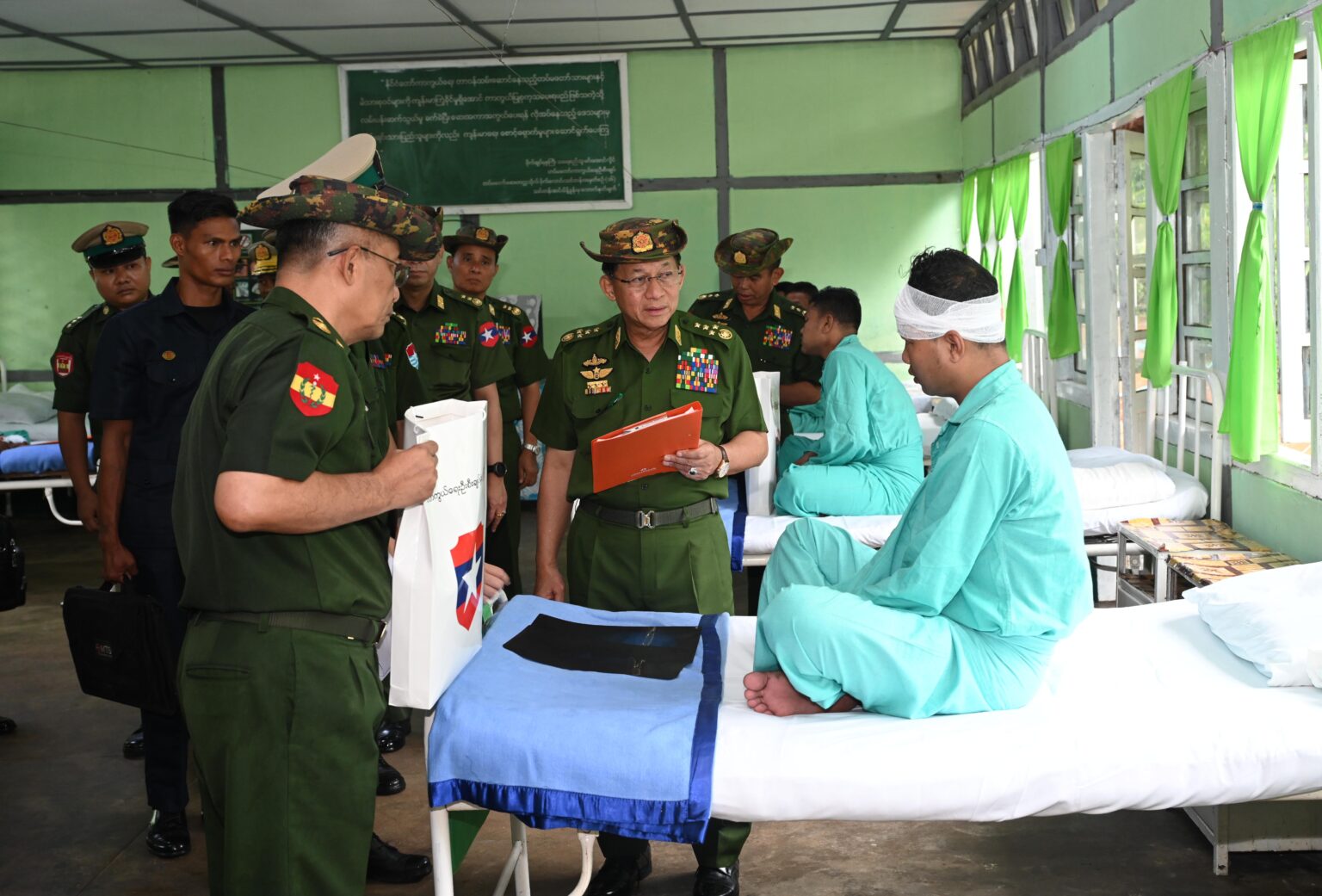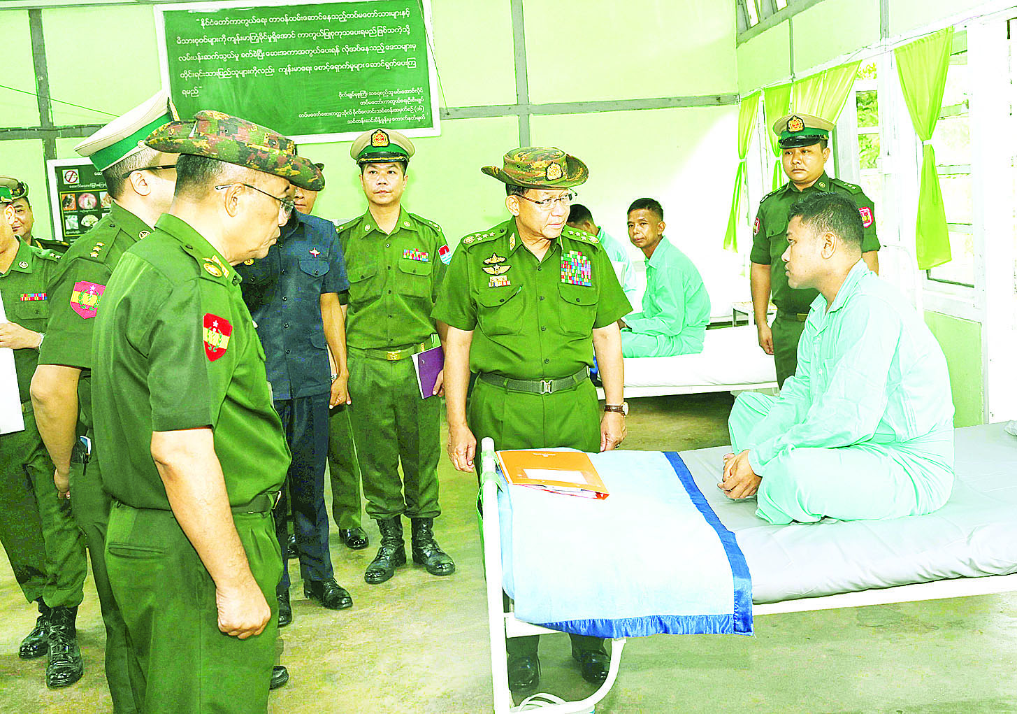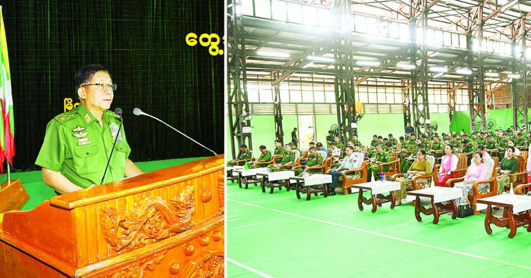 နိုင်ငံတော်လုံခြုံရေးနှင့်အေးချမ်းသာယာရေးကော်မရှင်ဥက္ကဋ္ဌ တပ်မတော်ကာကွယ်ရေးဦးစီးချုပ် ဗိုလ်ချုပ်မှူးကြီး မင်းအောင်လှိုင် ကမ်းရိုးတန်းဒေသတိုင်းစစ်ဌာနချုပ်နယ်မြေအတွင်း နယ်မြေလုံခြုံရေးဆောင်ရွက်ထားရှိမှု အခြေအနေများအား စစ်ဆေး၊ တပ်နယ်မိသားစုများအား တွေ့ဆုံအမှာစကားပြောကြား