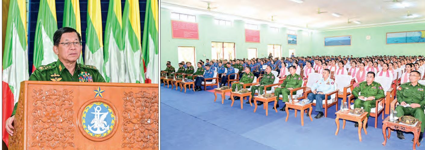 နိုင်ငံတော်လုံခြုံရေးနှင့်အေးချမ်းသာယာရေးကော်မရှင်ဥက္ကဋ္ဌ တပ်မတော်ကာကွယ်ရေးဦးစီးချုပ် ဗိုလ်ချုပ်မှူးကြီး မင်းအောင်လှိုင် အနောက်တောင်တိုင်းစစ်ဌာနချုပ် ဟိုင်းကြီးကျွန်းတပ်နယ်မှ အရာရှိ၊ စစ်သည် မိသားစုများအား တွေ့ဆုံအမှာစကားပြောကြား