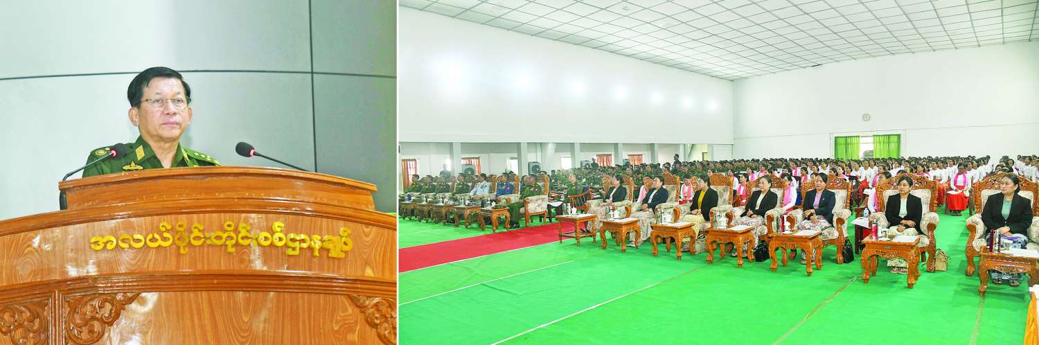 လက်ရှိအချိန်တွင် တပ်မတော်၌ အမျိုးသမီးစစ်မှုထမ်းများသည်လည်း အမျိုးသားများနှင့်ရင်ပေါင်တန်း၍ နိုင်ငံတော်ကာကွယ်ရေးနှင့်လုံခြုံရေးတာဝန်များကို ထမ်းဆောင်နေပြီဖြစ်ကြောင်း၊ ၂၀၂၄ ခုနှစ်တွင် ကောက်ယူခဲ့သည့်လူဦးရေနှင့်အိမ်အကြောင်းအရာသန်းခေါင်စာရင်းအချက်အလက်များအရ မိမိတို့နိုင်ငံတွင် အမျိုးသမီးဦးရေမှာ ပိုမိုများပြားသည်ကို တွေ့ရှိရကြောင်း၊ သို့ဖြစ်၍နိုင်ငံတော်တွင် အမျိုးသမီးများ၏လုပ်အားမှာ မနည်းသည်ကို တွေ့မြင်နိုင်ကြောင်း၊ တပ်မတော်သားမိသားစုဝင် မှီခိုသူမိသားစုများ အချင်းချင်းအနေဖြင့် ညီရင်းအစ်ကို၊ မောင်ရင်းနှမစိတ်ဓာတ်မွေး၍ စည်းလုံးညီညွတ်စွာဖြင့် နေထိုင်ဆောင်ရွက်ကြရန်လိုကြောင်း၊ စစ်သည်အင်အားနှင့် ရဲမေအင်အားများ ပူးပေါင်းဆောင်ရွက်မည်ဆိုပါက နိုင်ငံတော်၏ ကာကွယ်ရေးအင်အားစုမှာ များစွာတောင့်တင်းခိုင်မာသည်ကို တွေ့မြင်ရမည်ဖြစ်ပြီး စုစည်းညီညွတ်သည့်အားကို တန်ဖိုးထားဆောင်ရွက်ကြရန်လိုကြောင်း။